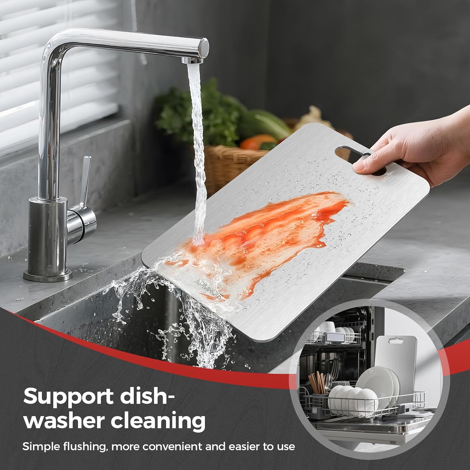 - 【Sturdy and Durable】: Engineered from a single piece of titanium without any glue or adhesives, these cutting boards are non-toxic and built for long-lasting durability. They can withstand the rigors of daily use, being highly resistant to notches and punctures from sharp knives. The wire-drawn surface treatment creates a smooth, pore-free finish that resists staining and odor absorption