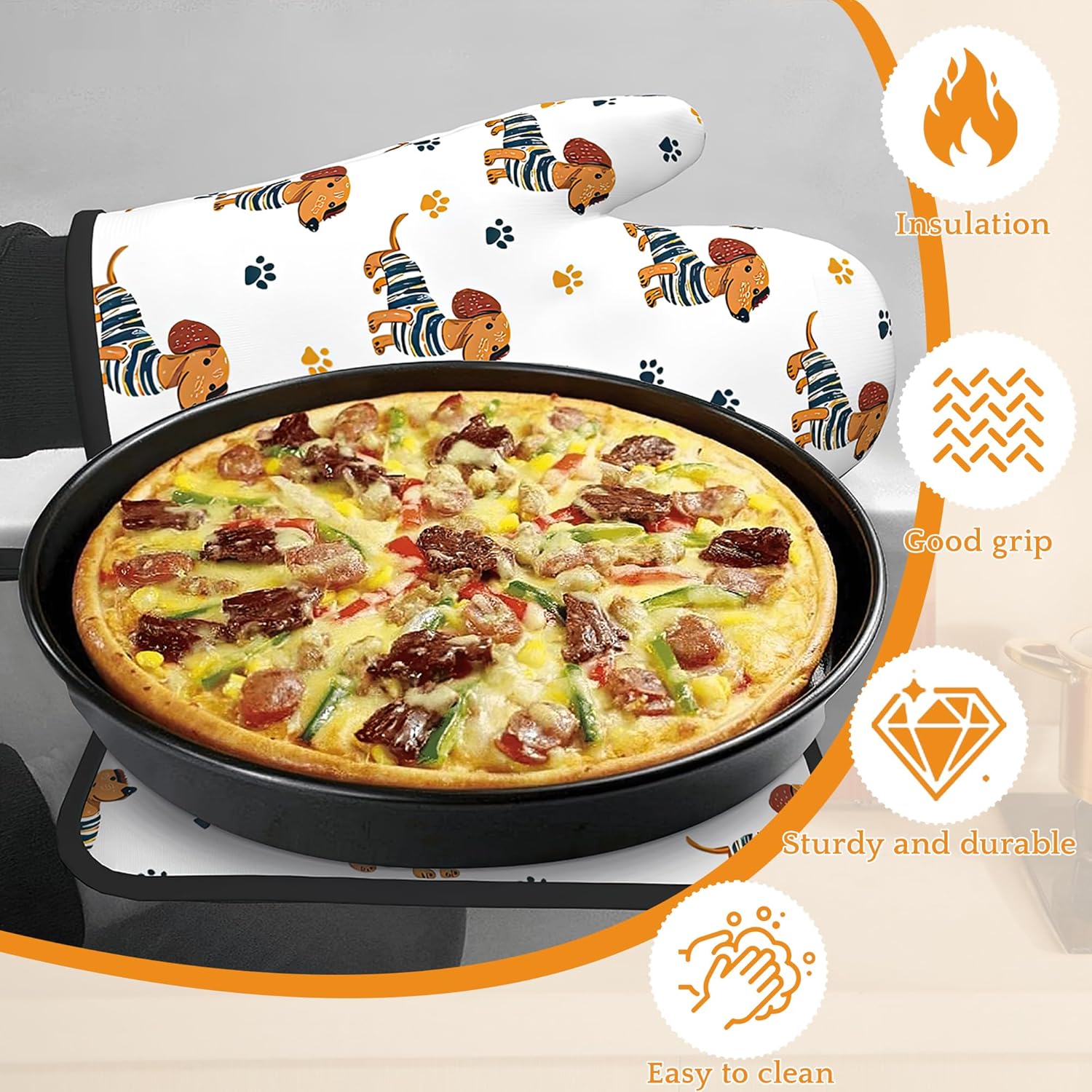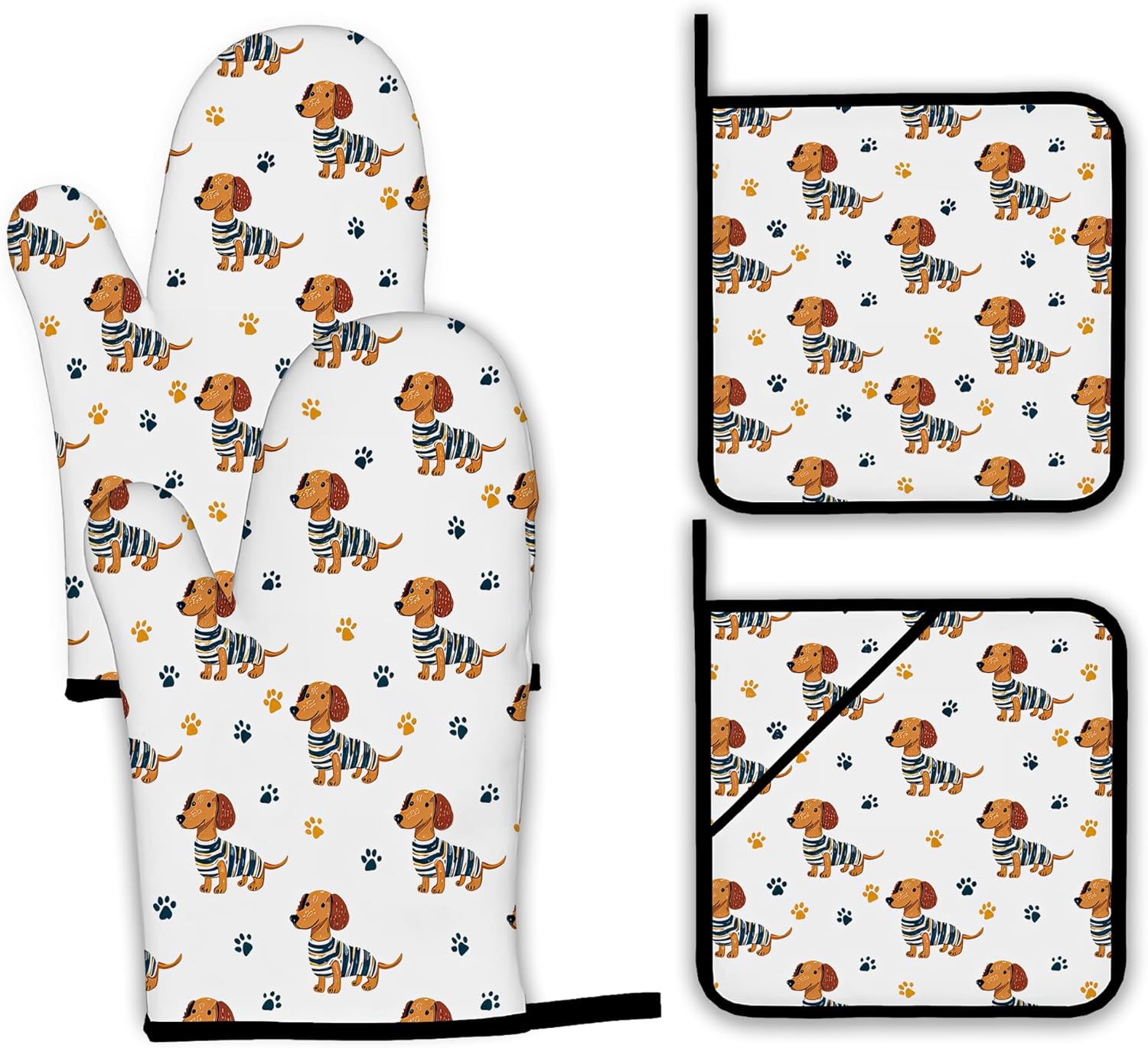 Cute Dachshund Dog Oven Mitts and Pot Holders,Paw Heat Resistant Oven Mitts Gloves and Pot Holder for Home Kitchen Decorations Cooking Baking BBQ Gifts,Set of 4