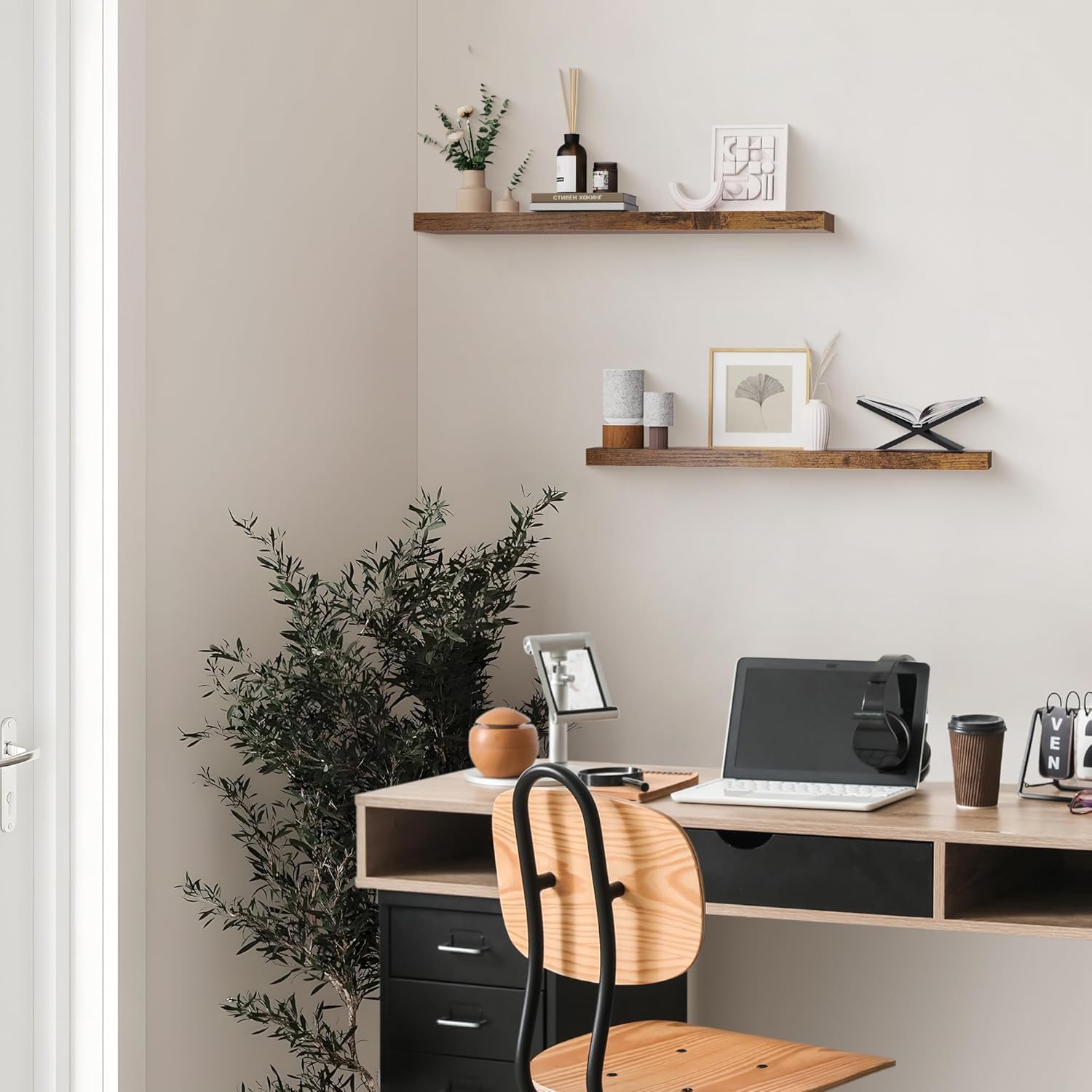 Colima Floating Shelves for Bedroom, Bathroom & Living Room - 36 Inch Wall Mounted, Set of 2-1.3" Thick Brown Wood Floating Book Shelves