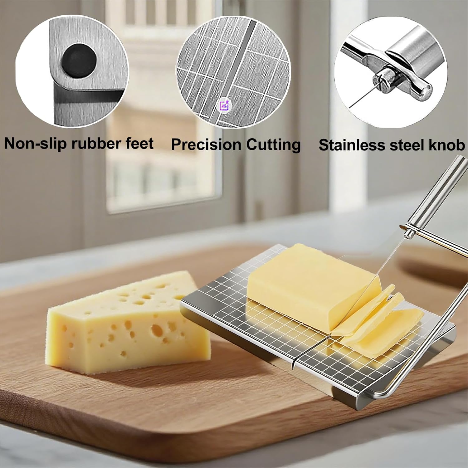 Stainless Steel Cheese Slicer Cutter, with 5 Spare Wires,Measurement Grid,Suitable for Block Cheese