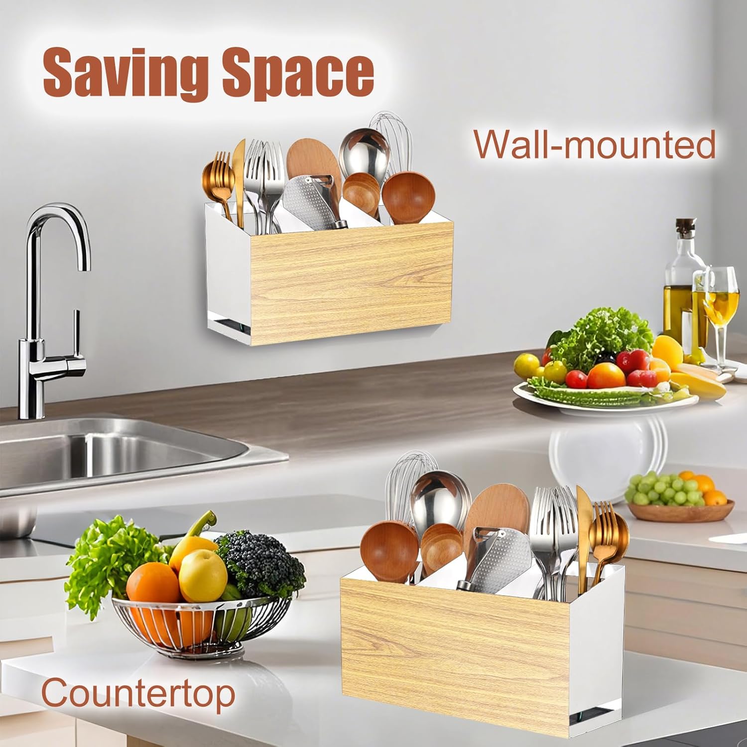- Large Capacity -- This utensil holder has 3 compartments which can hold over 30 pcs utensils.