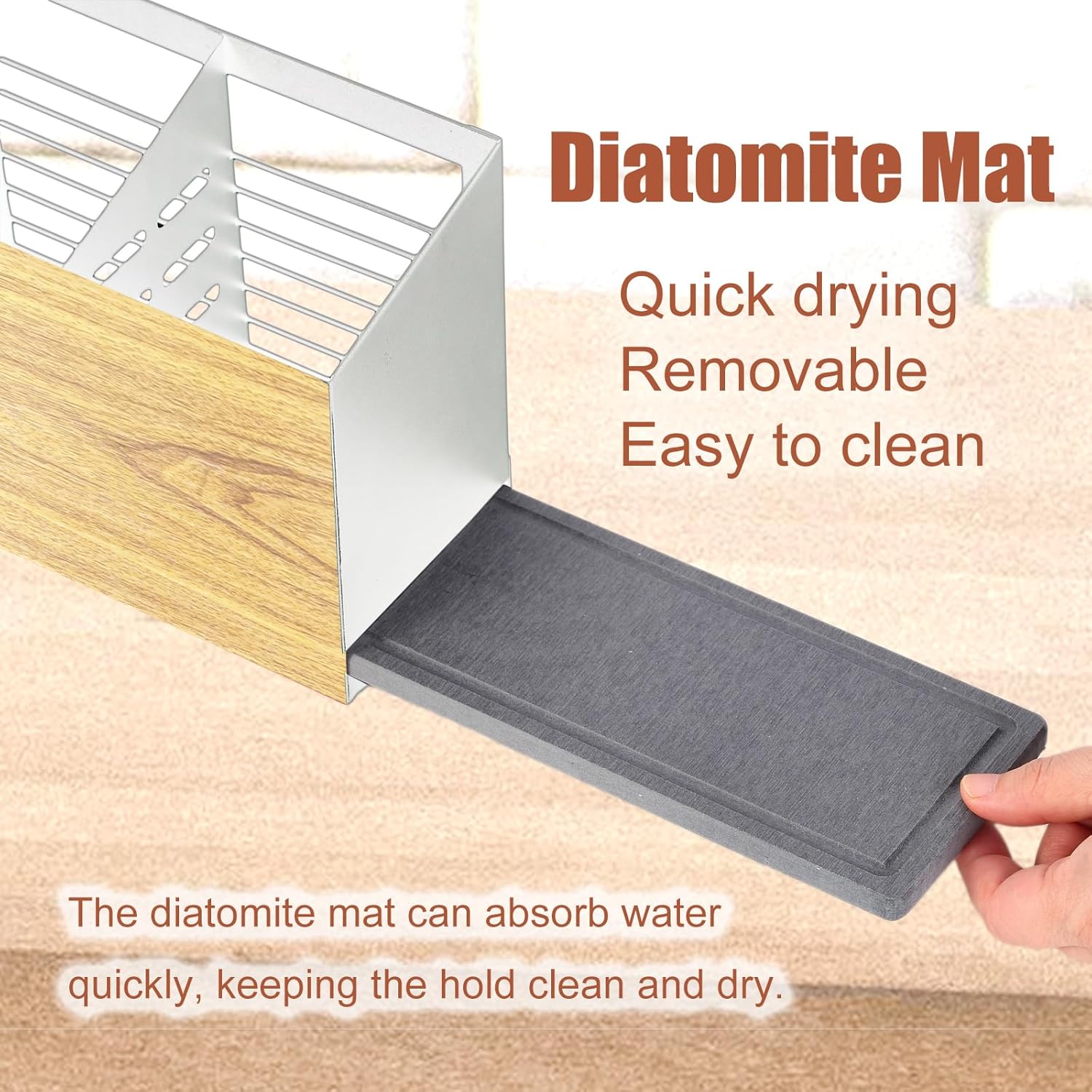 - Removable Drying Mat -- The drying mat is made from diatomite which is able to absorb water quickly and easy to clean.