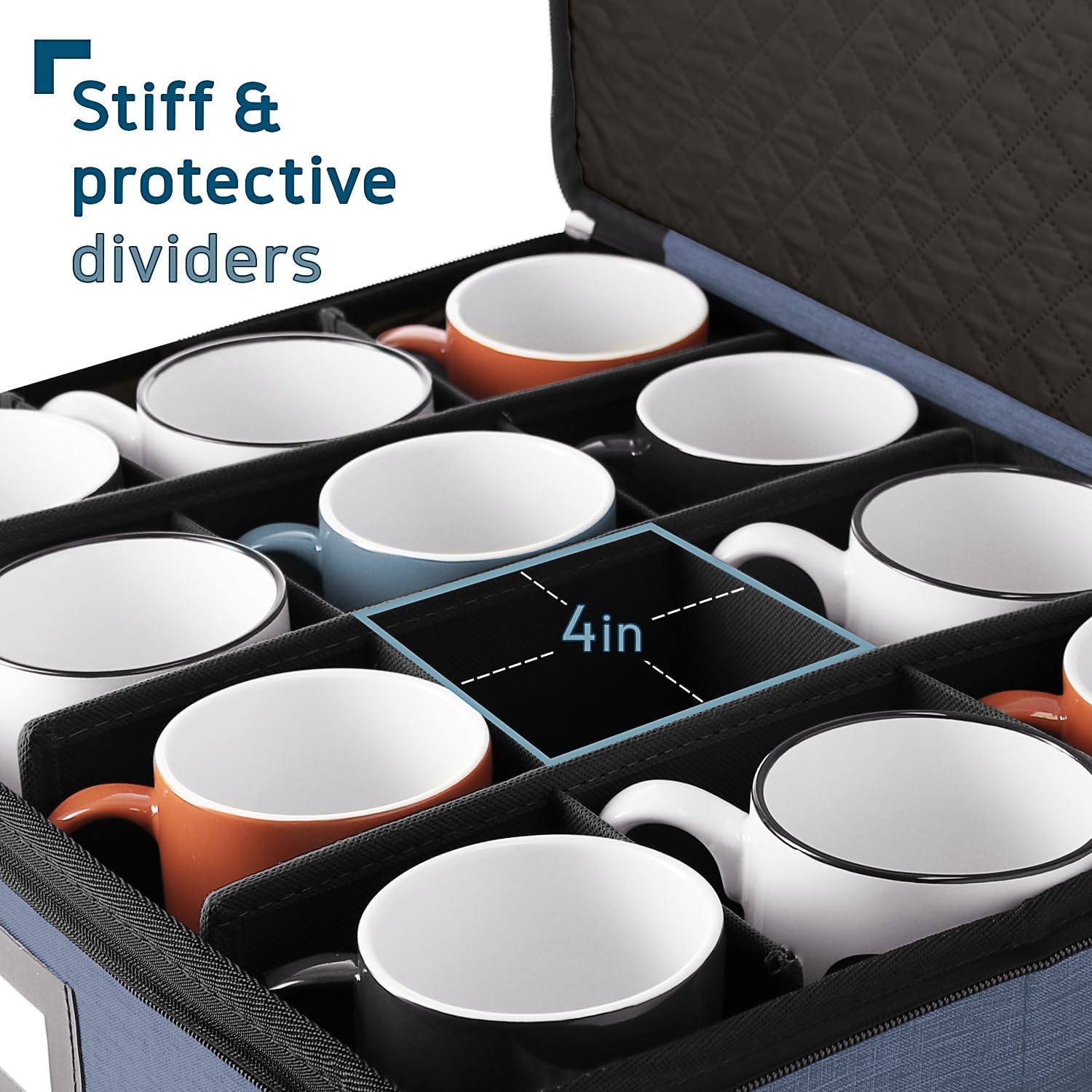 Fine China Storage Containers, 5 Piece Quilted Dish Storage Containers, Mug, Cup, and Plate Dish Organizer with Felt Dividers, Service of 12 Dinnerware Boxes for Moving, Seasonal Organization, Blue