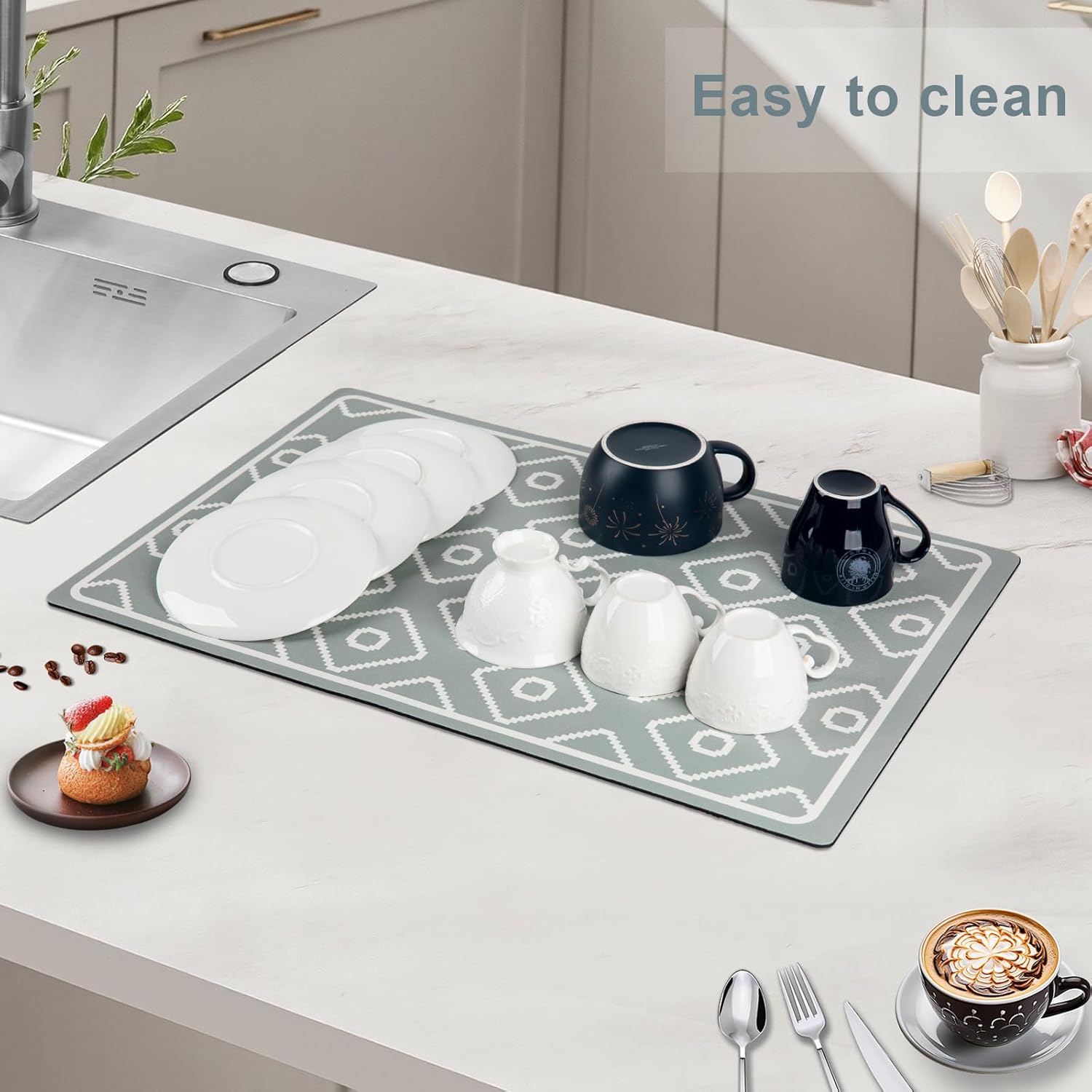 - Stylish and Versatile - Our dish mat, with its unique and chic designs, effortlessly complements your home decor, giving your countertop an attractive and cozy look. Measuring 23.6 x 15.7 inches, it suits both your coffee station and dish-drying area, and it can be tailored to fit any spot where you need water absorption, too.