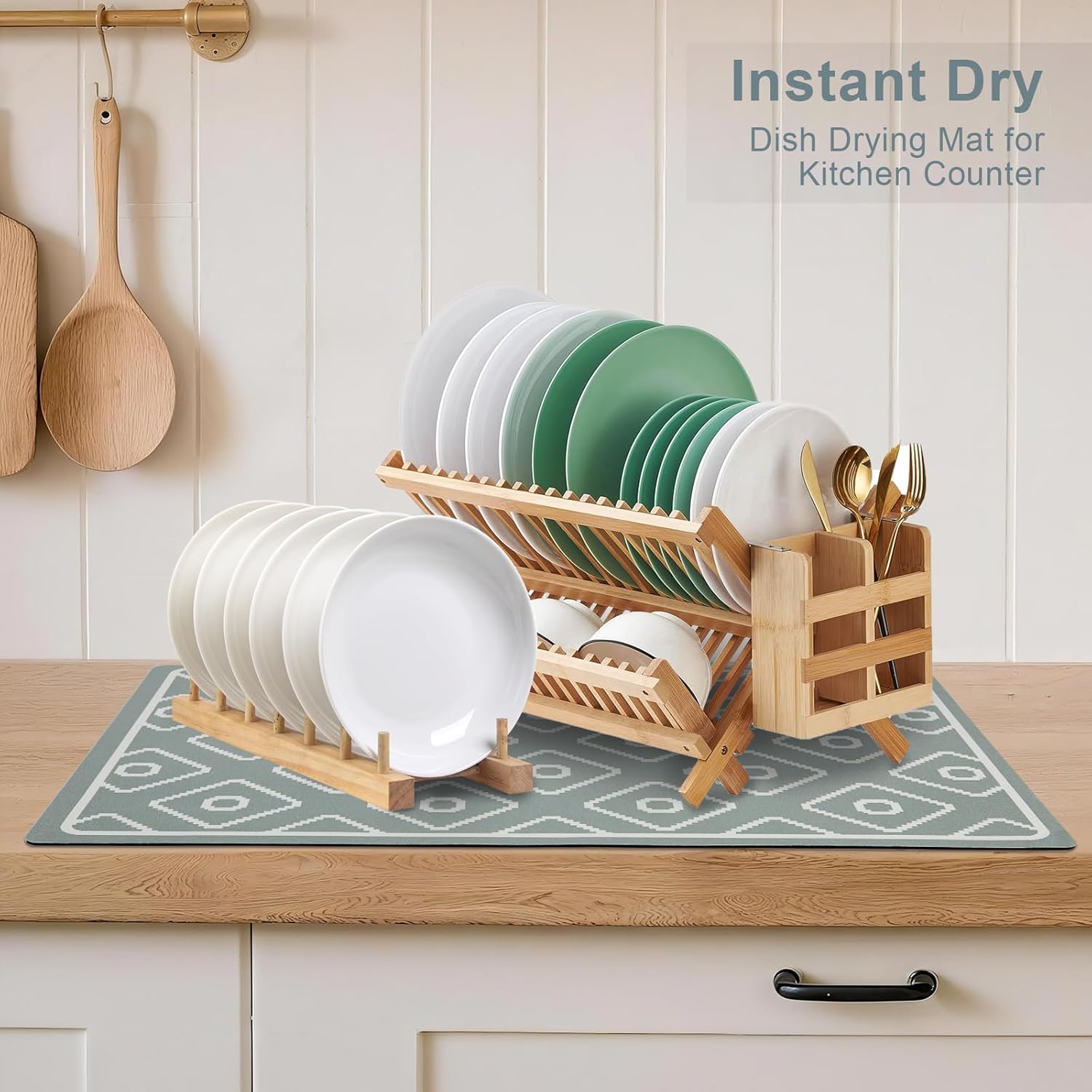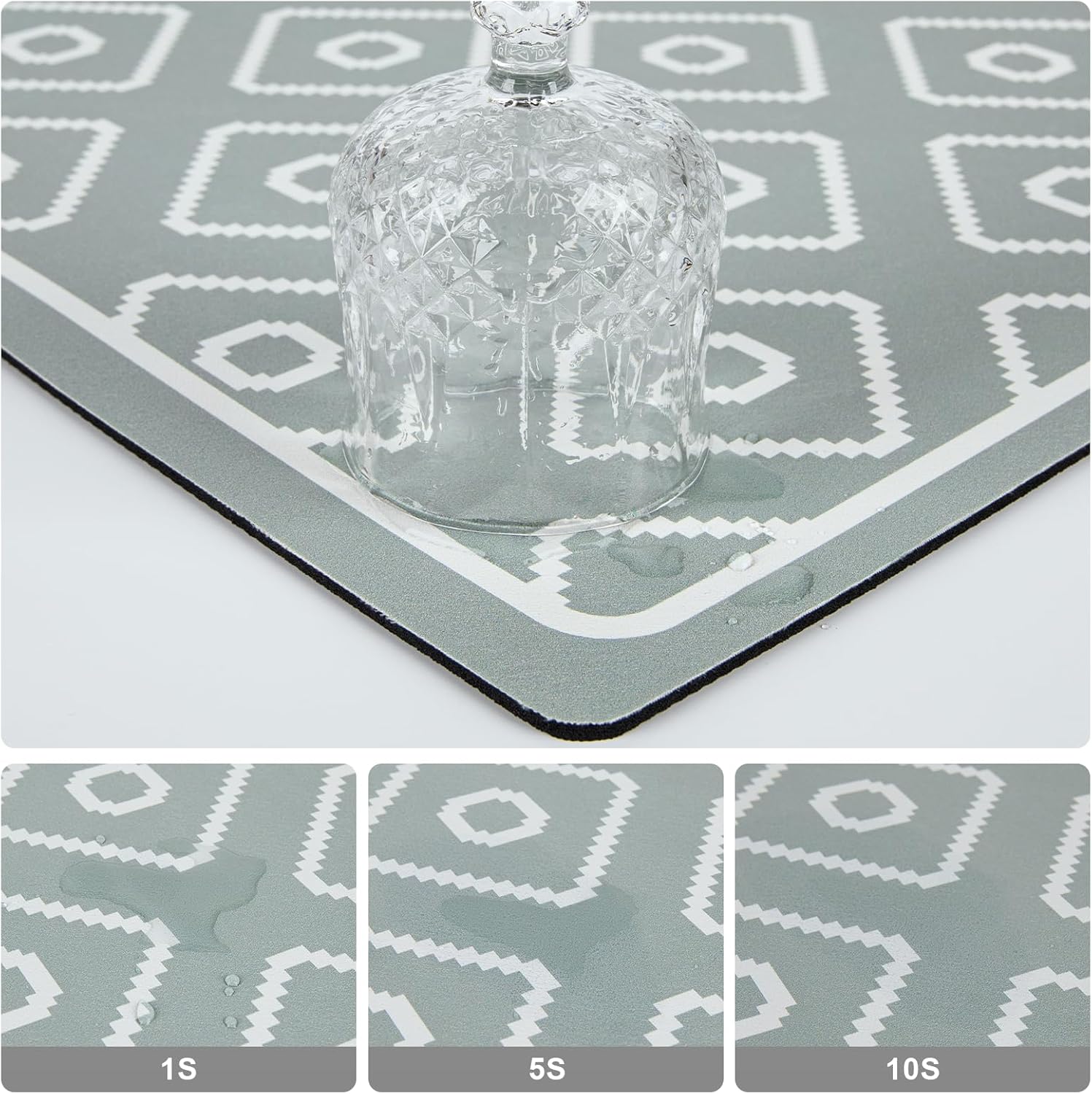 SUEH DESIGN Dish Drying Mat, Absorbent Coffee Mat 23.6 x 15.7 in Quick Dry Kitchen Drying Dish Drain Mat for Kitchen Counter Coffee Bar, Green