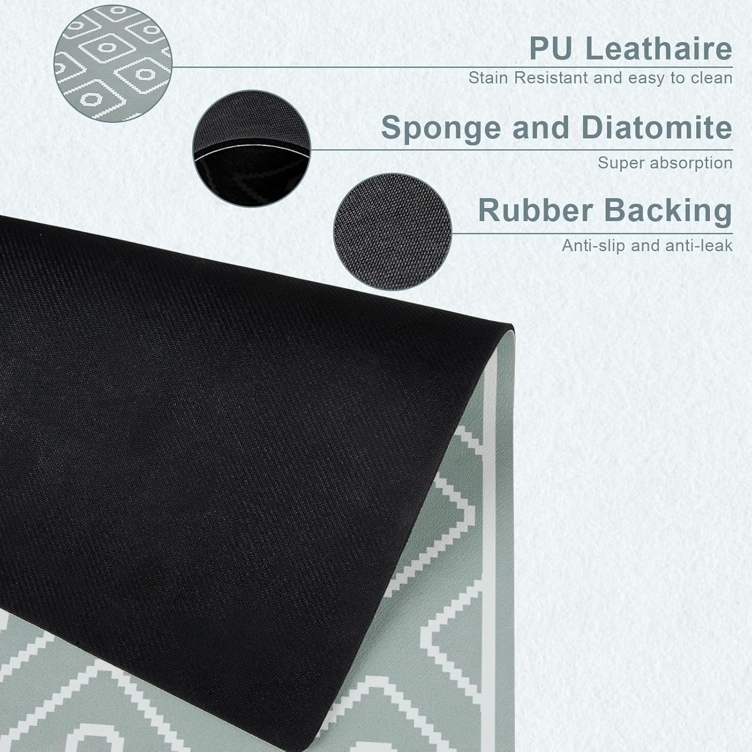 - Anti-Slip and Leak-Proof - The drying mat is well-constructed with a textured rubber backing, ensuring it firmly grips the counter and remains in place without slipping or shifting during use. Also, its leak-proof design ensures that your countertop remains dry even as the mat absorbs dripped water.
