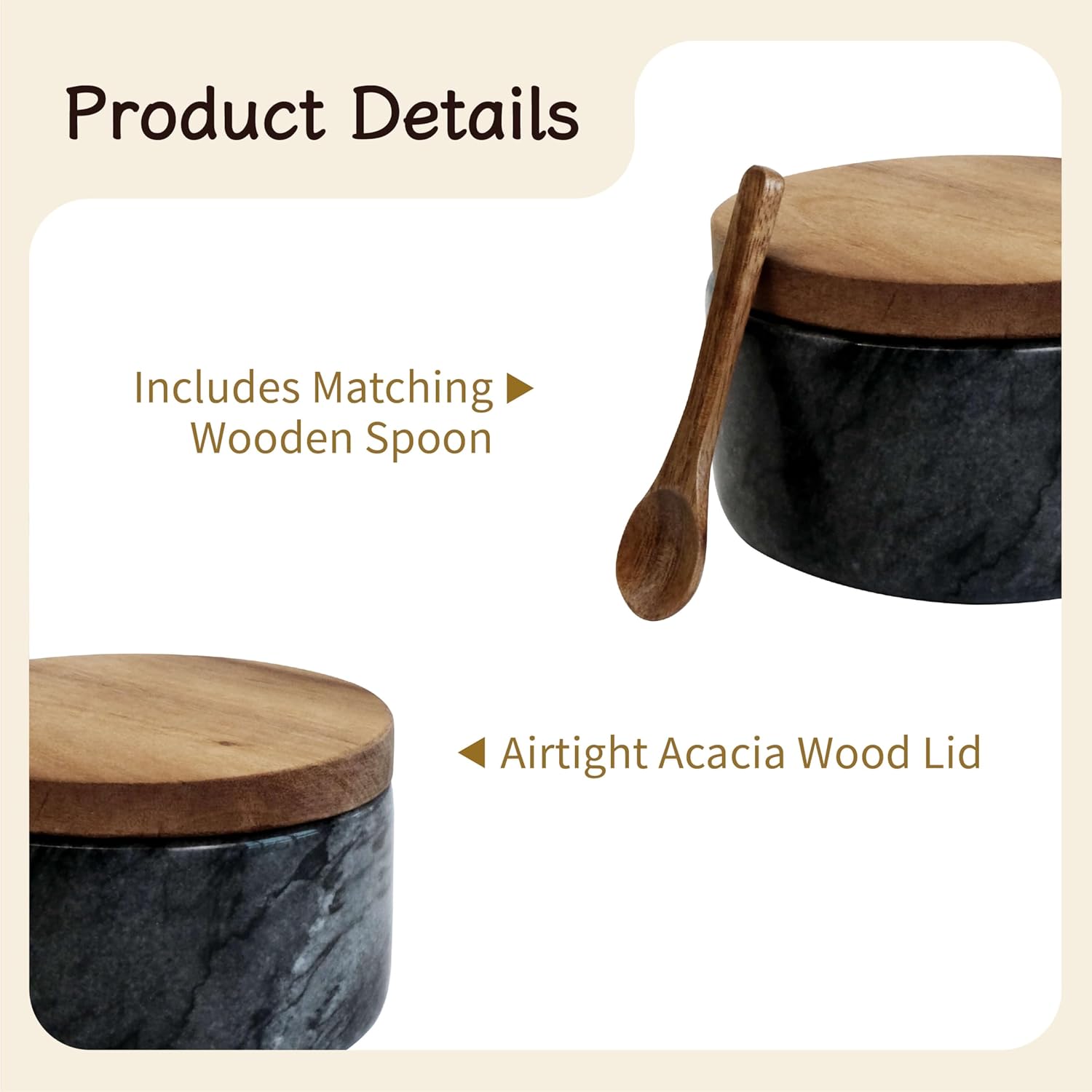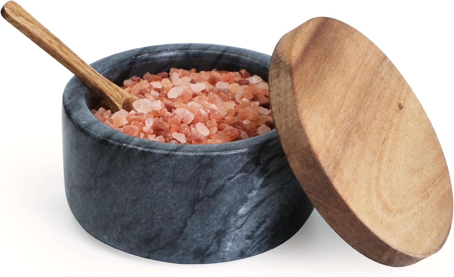- ELEGANT & FUNCTIONAL DESIGN – This Marble Salt Cellar with Acacia Wood Lid features a clean, minimalist style and natural materials that add timeless charm to your kitchen, bathroom, or dining table.