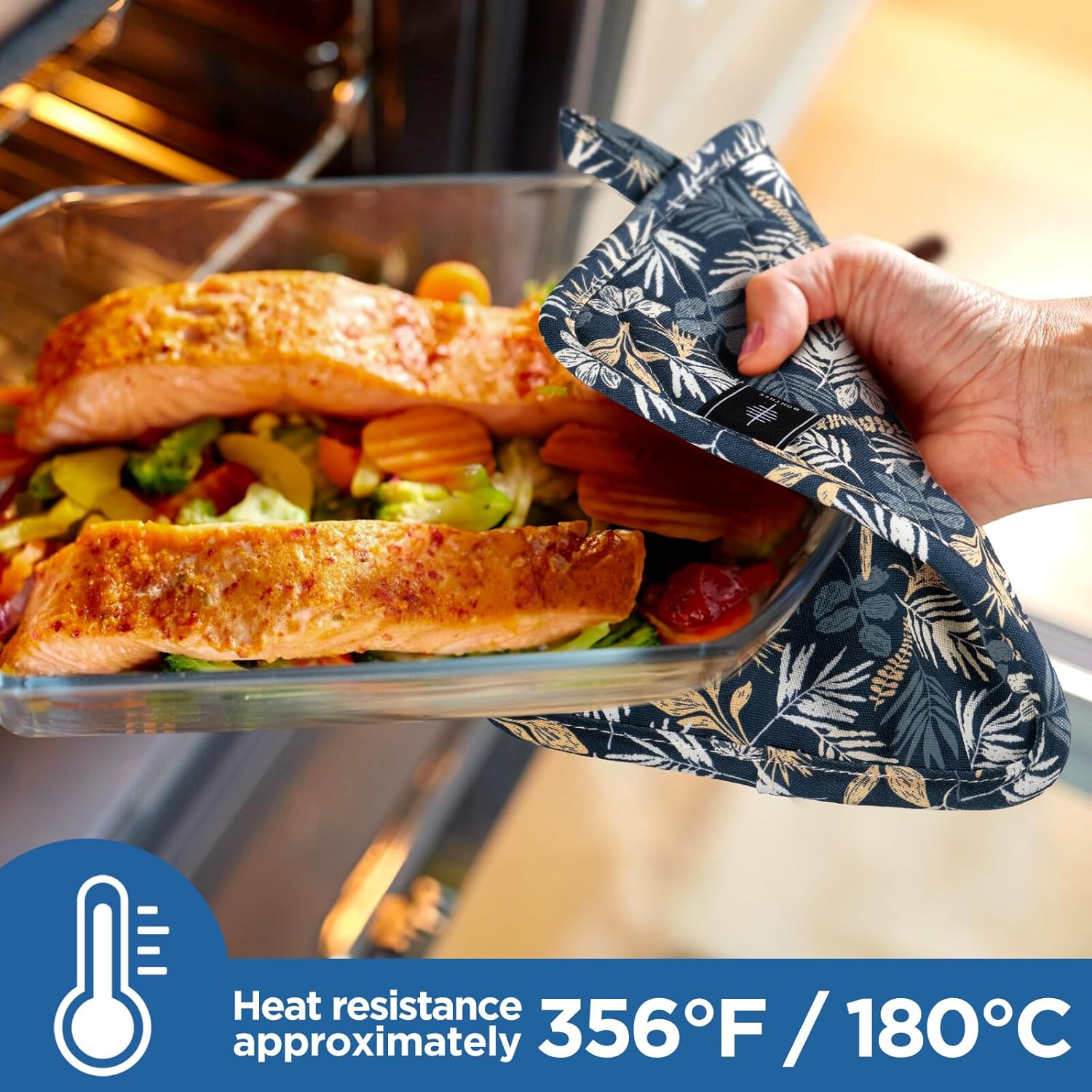 - [Heat-resistant Material] Each pot holder is made from high-quality, heat-resistant materials that can withstand temperatures up to 356℉/180℃. The thick padding ensures maximum insulation and prevents heat from reaching your hands, making it safe and comfortable to handle hot cookware.