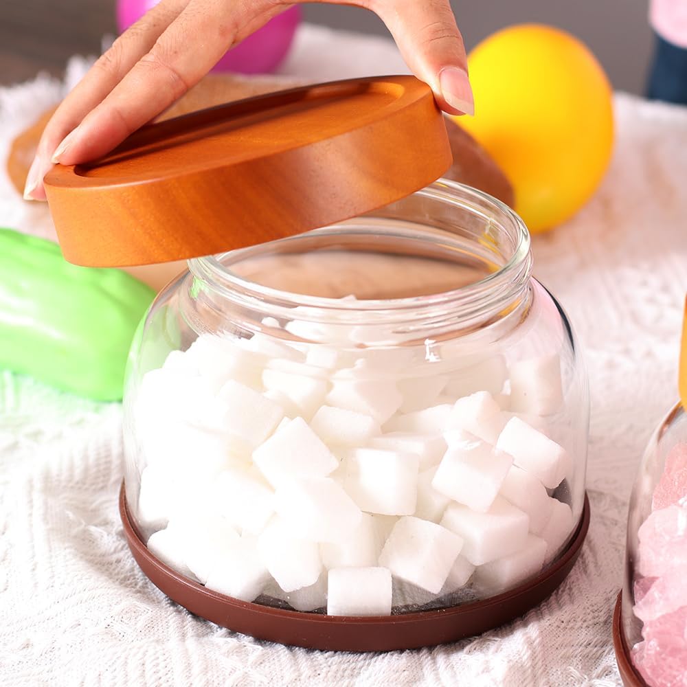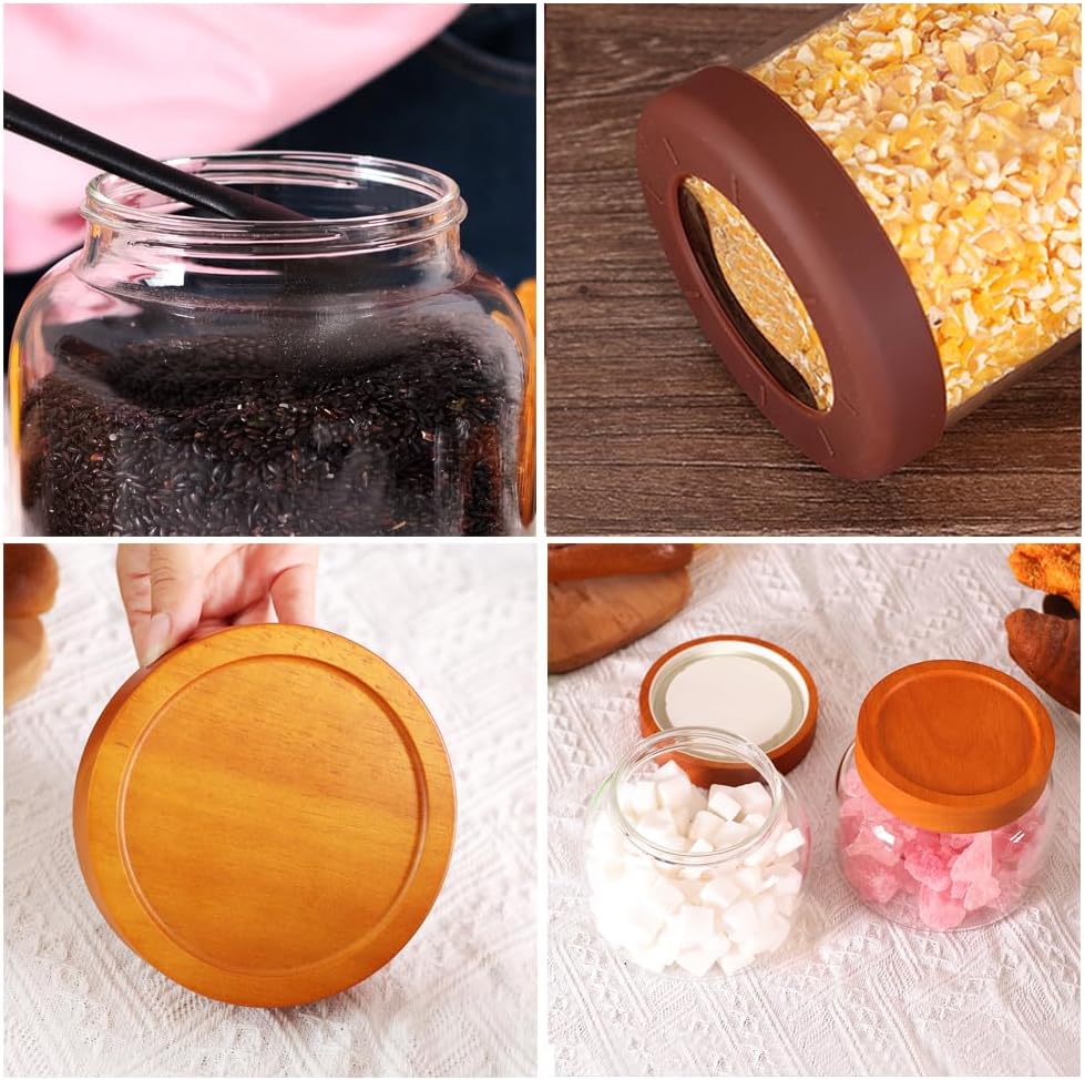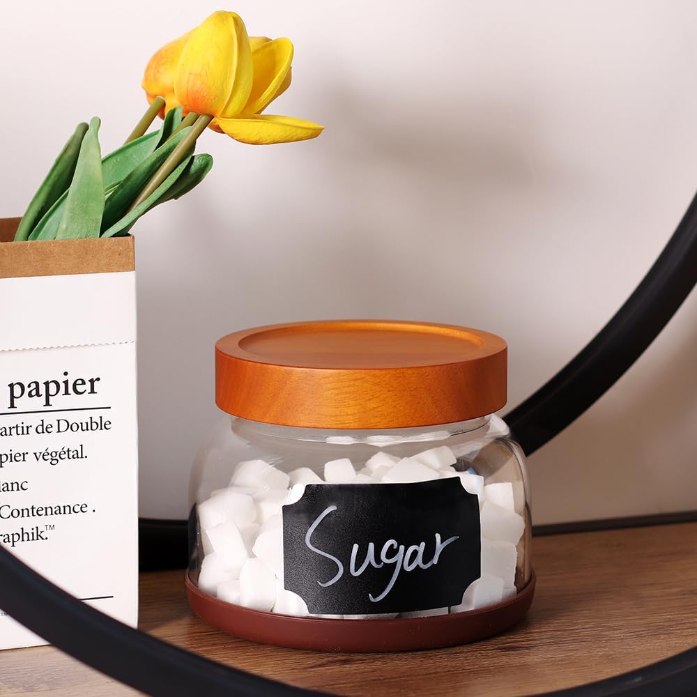 - 【Elegant Kitchen Decor】** Vibrant rubberwood lid + crystal-clear borosilicate glass creates a chic display. Includes 2 black spoons, labels & 1 marker for instant use.