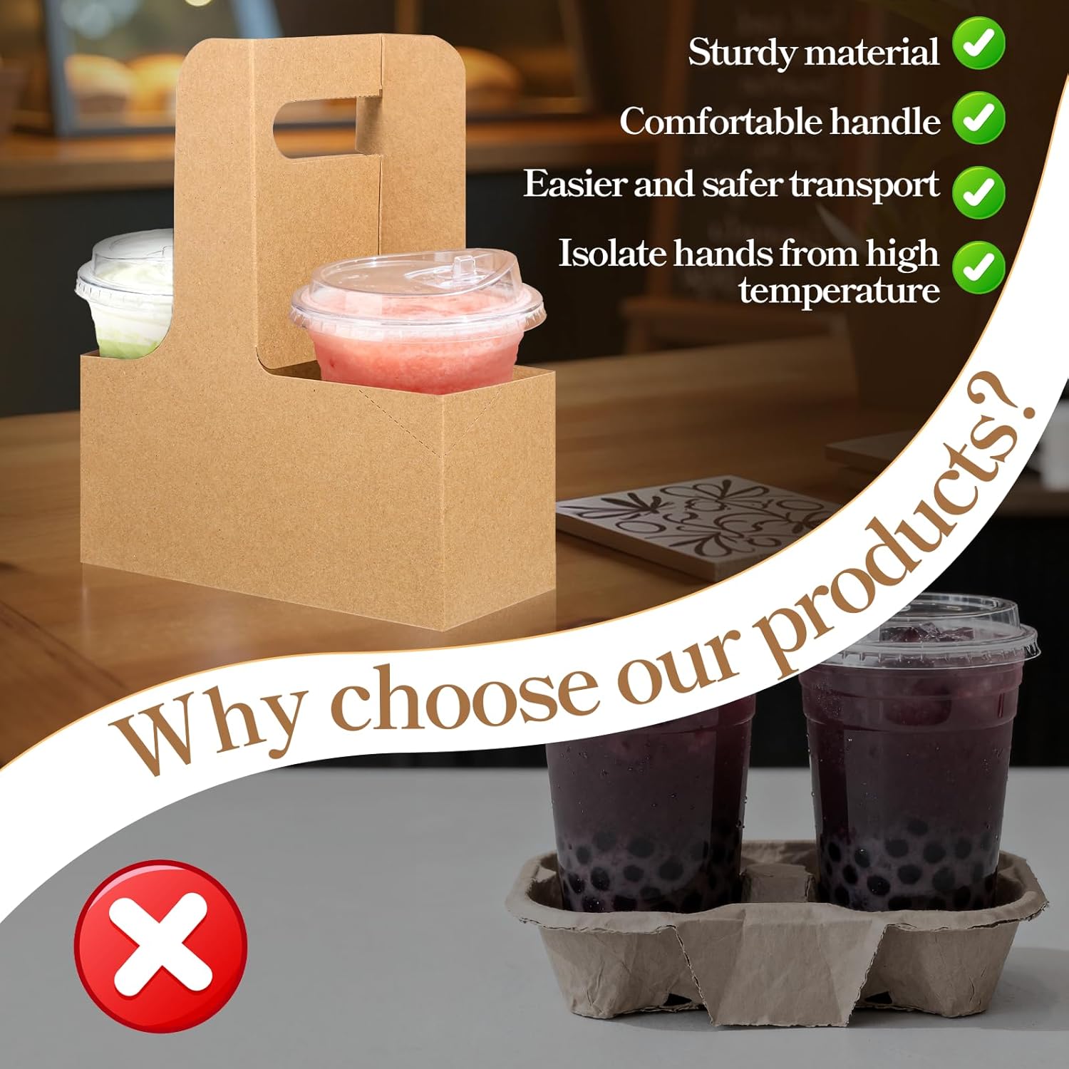 - 【Sturdy Drink Holder】Our brown cardboard coffee cup carrier is made of very safe, durable, non-destructive, and moisture-resistant material, which can be in direct contact with food. Ideal for bulk orders in restaurants, bubble tea shops, ice cream parlors, and cafes.