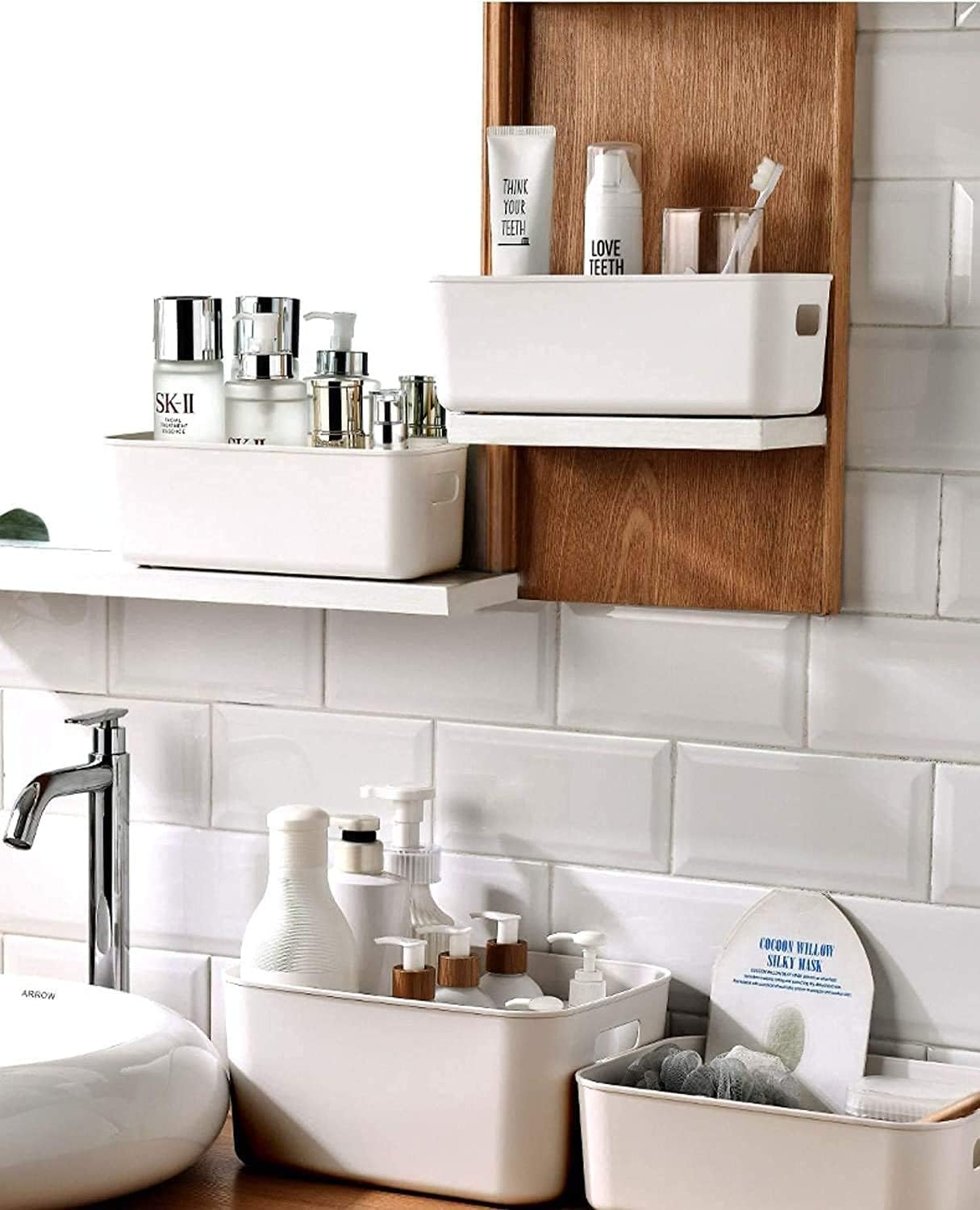 - 5-【Perfect Size】- 13.4x10.2x8''These storage shelves will organize your bathroom accessories while fitting in with your kitchen organization and storage. Its Flexible Size will make its use as your storage box, under bed storage, mail organizer and storage drawers. Comes in a value pack of 4 !