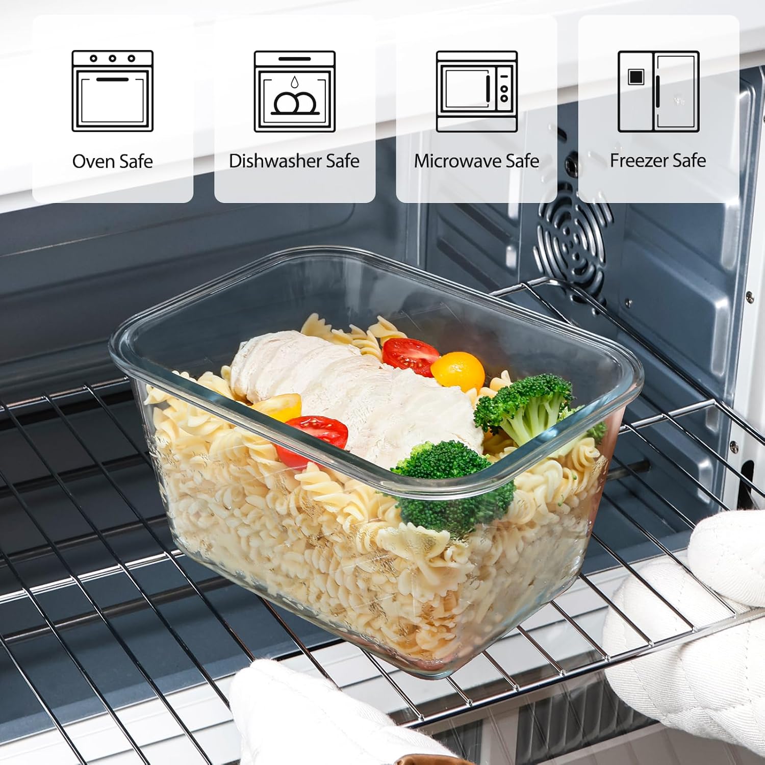 NUTRIUPS 2.6 L Large Glass Food Storage Containers, 9×6×5in Deep Rectangular Meal Prep Containers, Glass Microwave Bowls with Lids