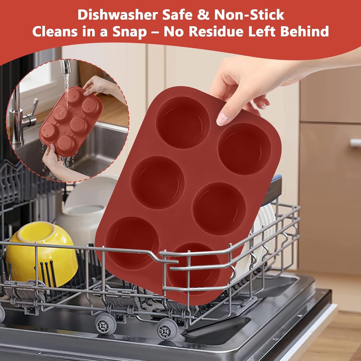 - The flexible, non-stick surface allows muffins to release effortlessly without sticking. Cleaning is a breeze—just rinse or place it in the dishwasher for quick, hassle-free maintenance