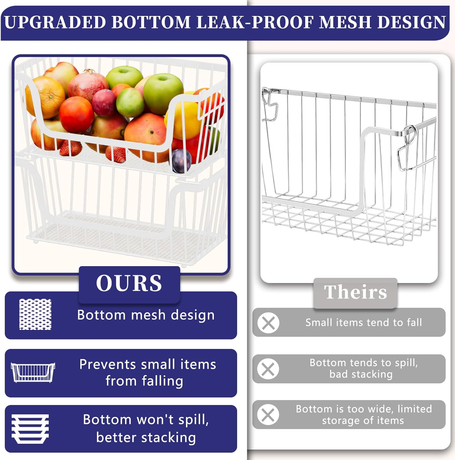 Enhanced Leak-Proof Bottom Stackable Wire Baskets, 5 Pack Pantry Organizers and Storage, pantry storage,Shelf Baskets, Fruit Basket, Potato and Onion Storage Bins,(White)