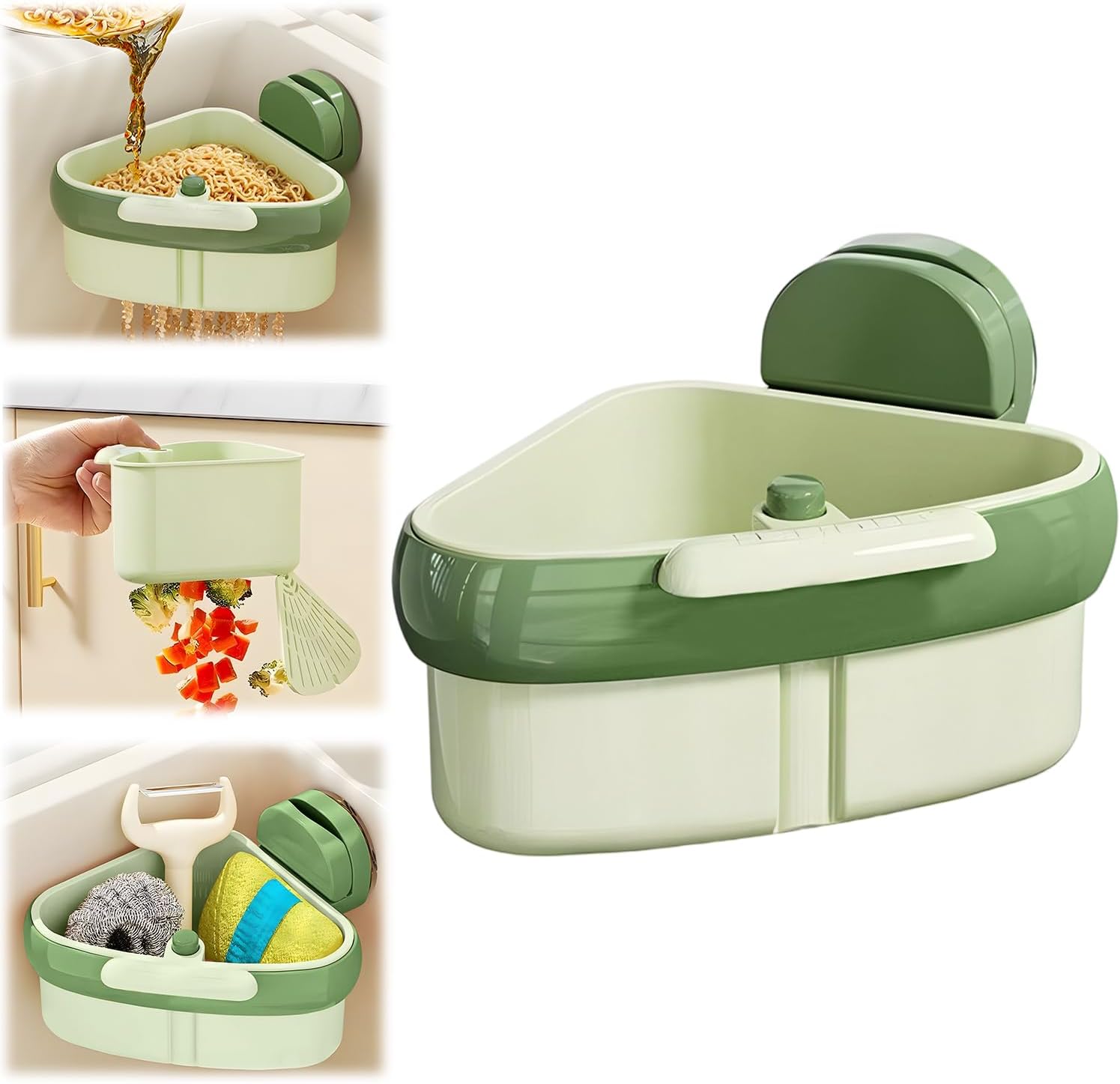 Sink Strainer Basket,2025 New Upgraded Suction Cup Press Sink Drainer Basket,Suction Cup Corner Rack,Corner Trash Catcher for Food Waste,Faucet Sponge Storage Rack (Green)
