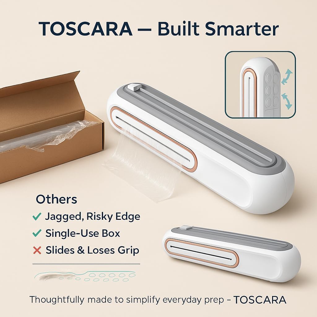 - β¨ πππ π πππππ ππππππ ππππππ β Hidden two-way sliding blade cuts cling wrap, foil, or baking paper smoothly without jagged edges or finger risk.