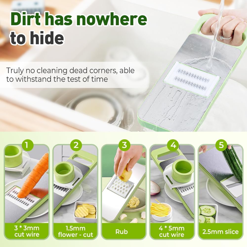 - 【Multifunctional Vegetable Cutter-Easy to Clean】With its simple design, cleaning this vegetable slicer slicer is effortless—just rinse or place in the dishwasher, making post-cooking cleanup quick after using it as a food slicer or lemon slicer.