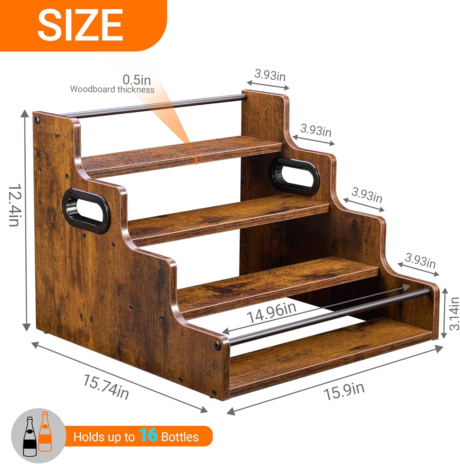 2 Pack 4-Tier Liquor Bottle Display Shelf, 16-Inch Wooden Bar Shelves for Liquor Bottles, Countertop Whiskey Shelf and Bourbon Shelf Organizer for Home Bar, Kitchen (Rustic Brown)