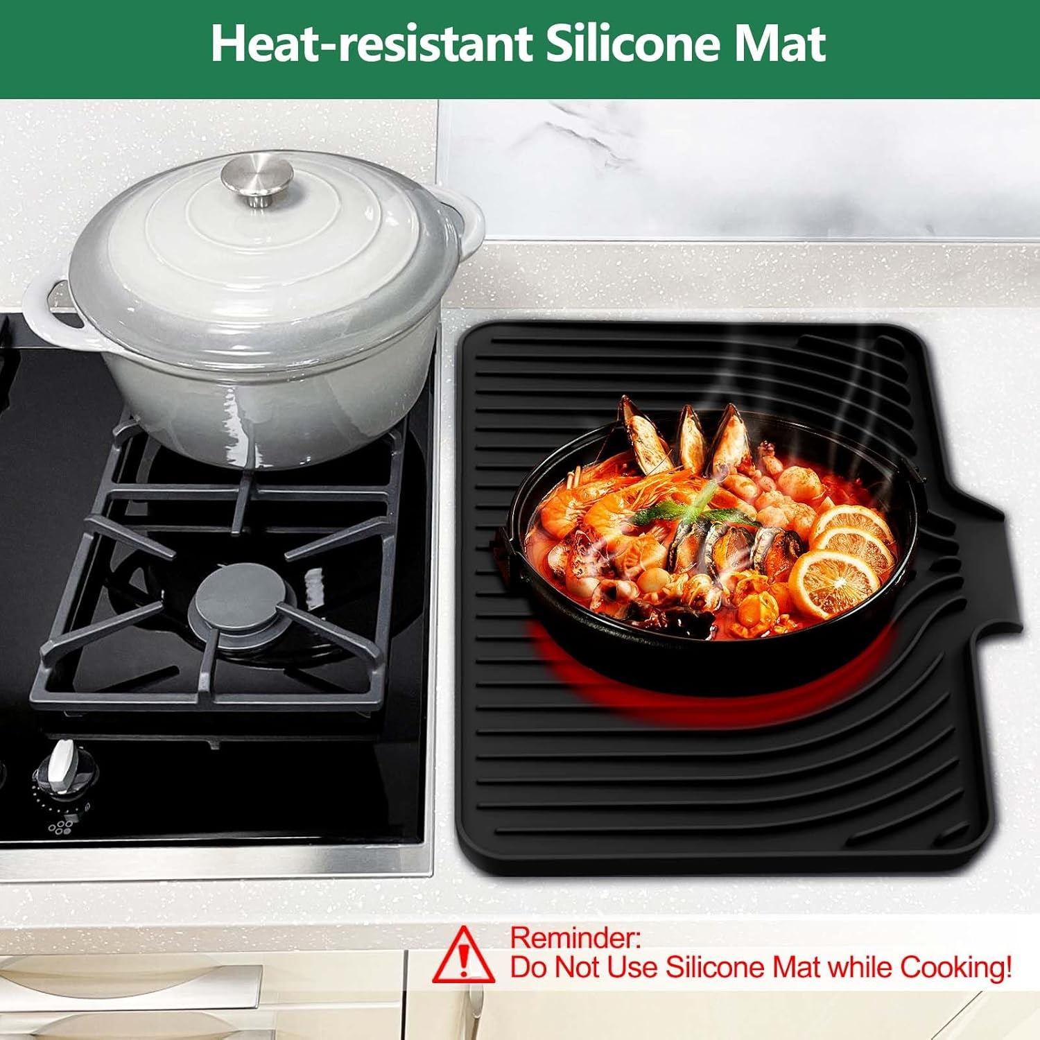 - Anti-Slip and Heat-Resistant: Dish mat drying kitchen mat has a great anti-slip design, keeping dishes, fruits, veggies and glassware steady. Besides, it's heat-resistant up to 450°F (230°C), safeguarding countertops well from hot pots and appliances