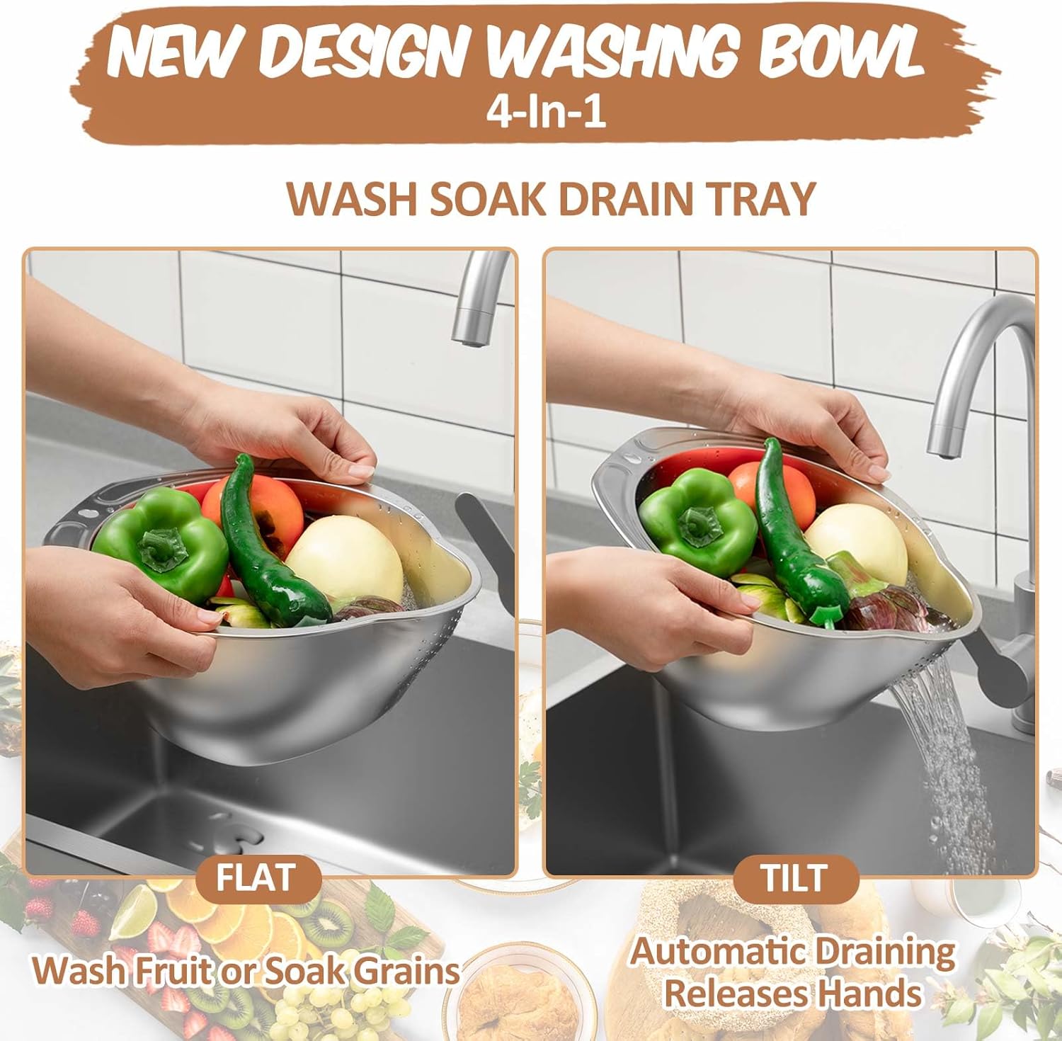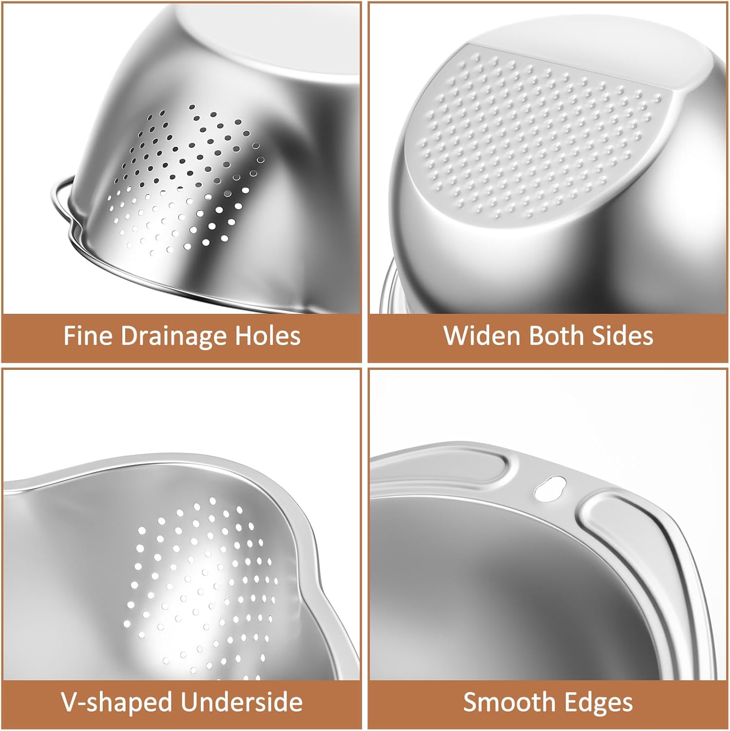 2 Pcs Rice Washer Strainer Bowl 4-in-1 Washing Bowl for Quinoa, Stainless Steel Rinser with Side Drainers Small Colander for Cleaning Fruits, Vegetables, and Beans - Versatile Kitchen Tool
