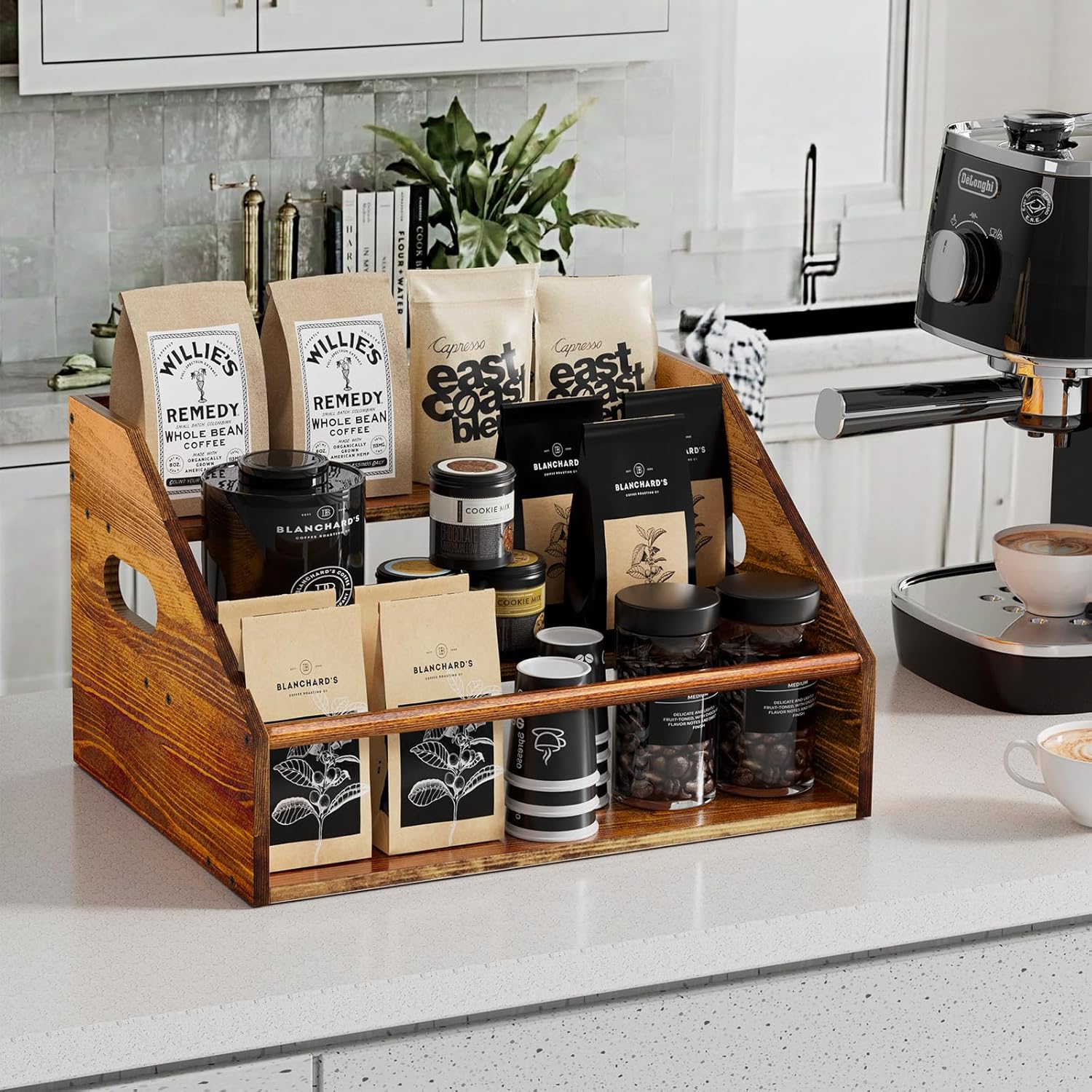 - Vintage-inspired design – each plank of this 3-tier wine bottle holder showcases its own unique natural wood grain and features a vintage-style aesthetic, effectively elevating the look of any home bar, coffee bar, or kitchen countertop. It’s the perfect gift for wine and spirits enthusiasts, coffee lovers, liquor collectors, and party aficionados.