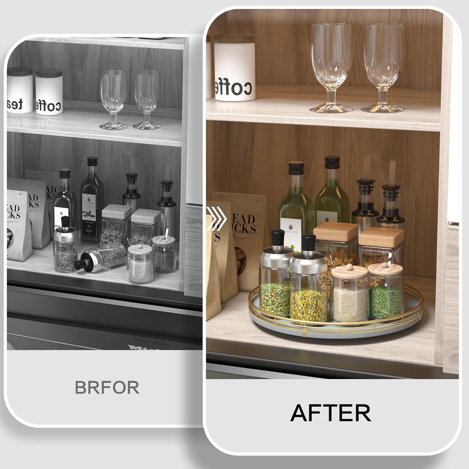 - 【Versatile Home Organizer】More than just a kitchen counter organizer, this lazy susan can also be used for coffee stations, bathroom essentials, or as a rotating tray for skincare and cosmetics. A true lazy susan organizer for cabinet, countertop, and beyond.