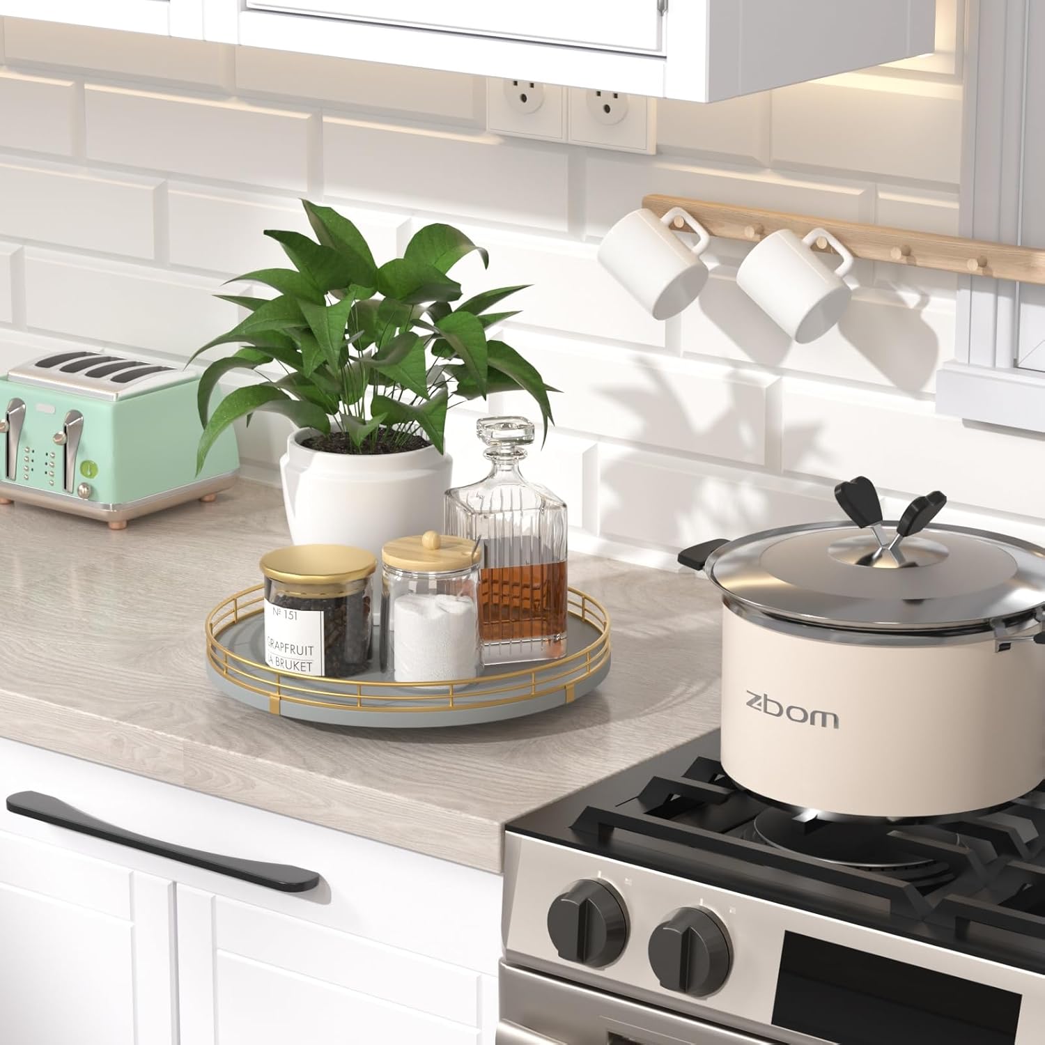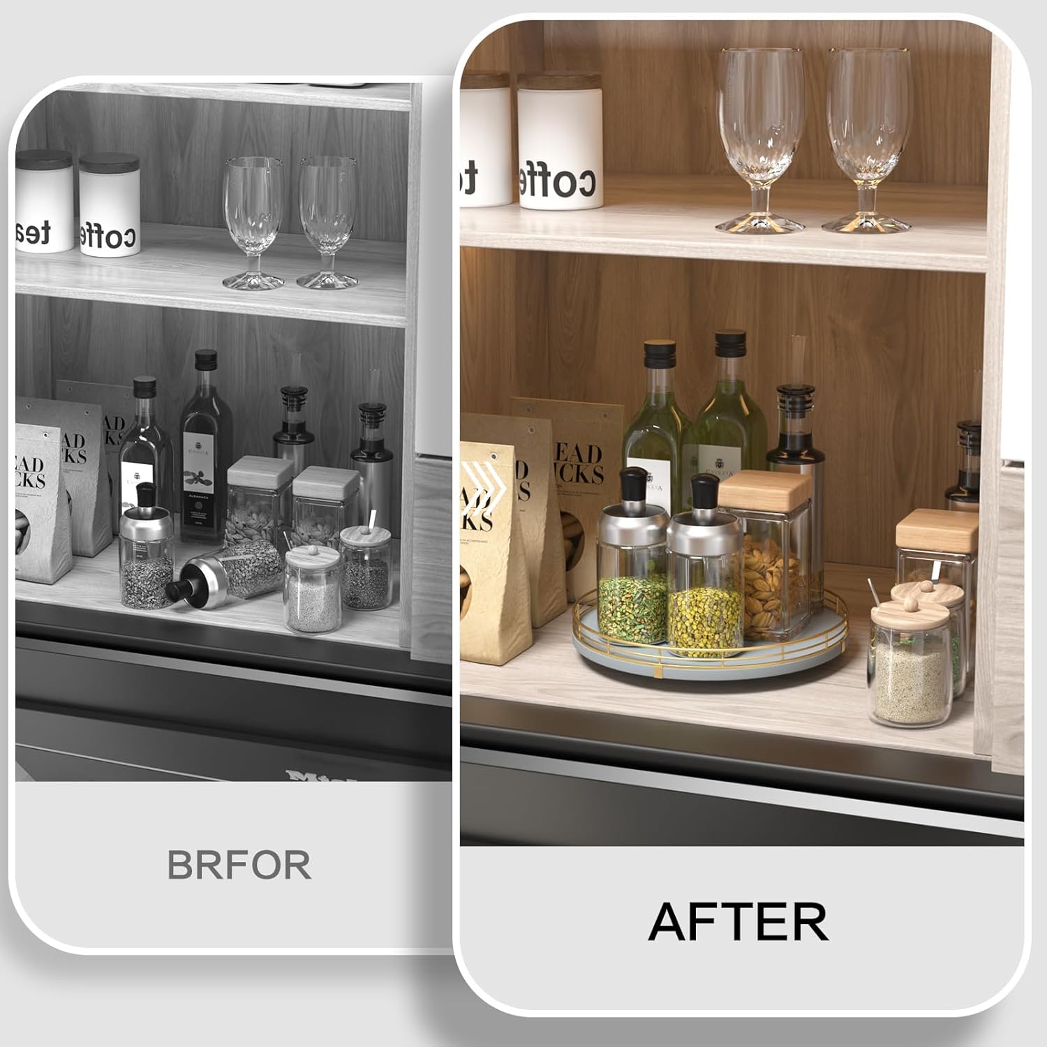 - 【Versatile Home Organizer】More than just a kitchen counter organizer, this lazy susan can also be used for coffee stations, bathroom essentials, or as a rotating tray for skincare and cosmetics. A true lazy susan organizer for cabinet, countertop, and beyond.