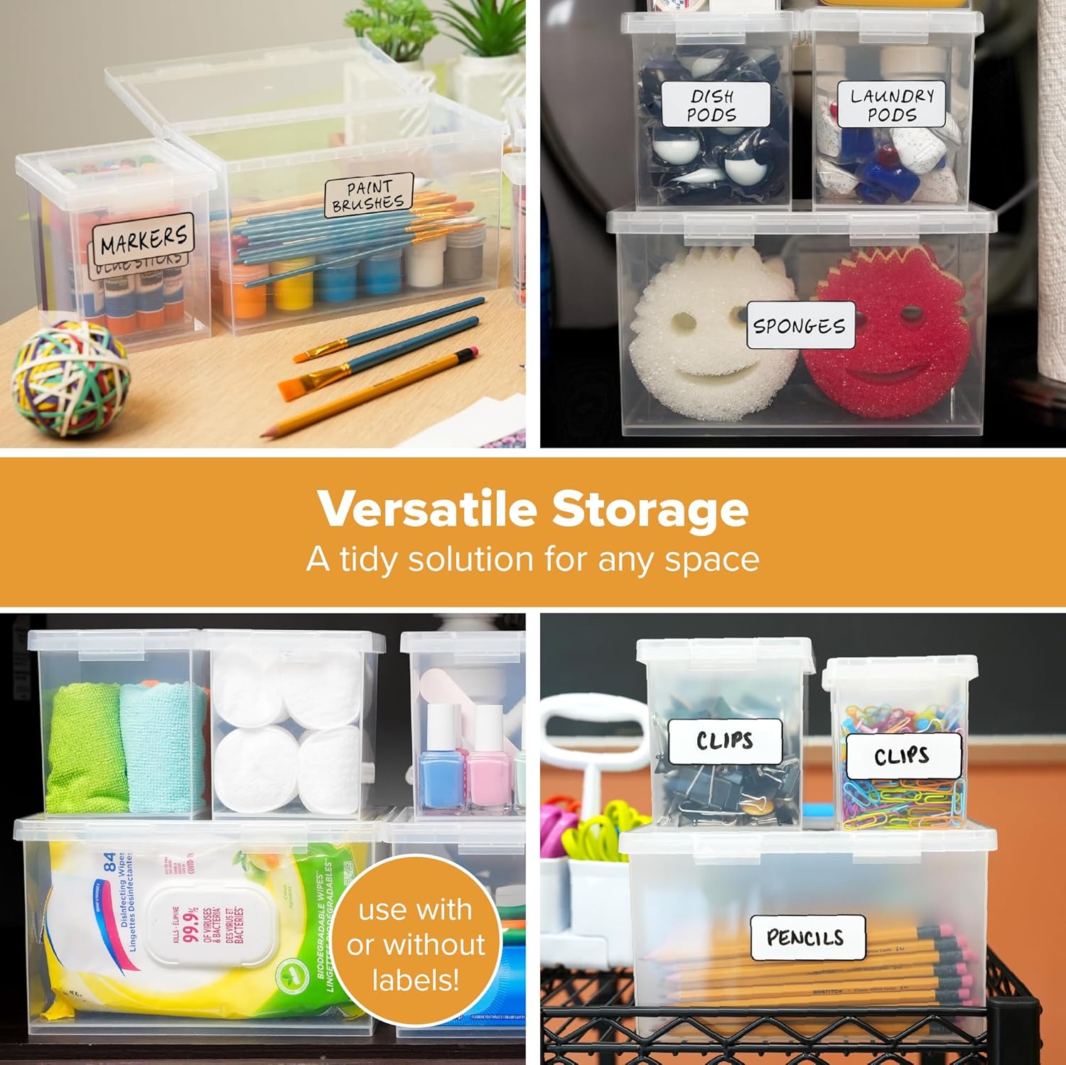 - ADJUSTABLE CONTENT TAGS: Stay organized with customizable labeling! Each set includes write-on/wipe-off stickers and dry-erase markers so you can label, relabel, and update contents anytime. Perfect for rotating seasonal items or reorganizing on the fly
