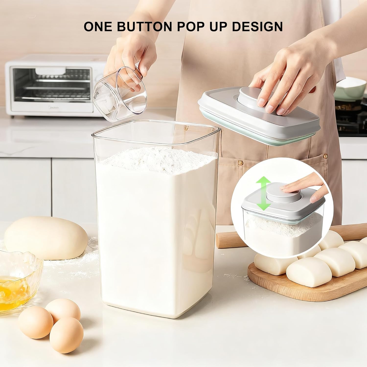 - 【Unique One Botton Opening POP Design】Cozey Daily food storage containers feature a one-touch pop-up design. Simply press the central button for easy lid opening and closing. Enjoy the convenience of one-handed use.