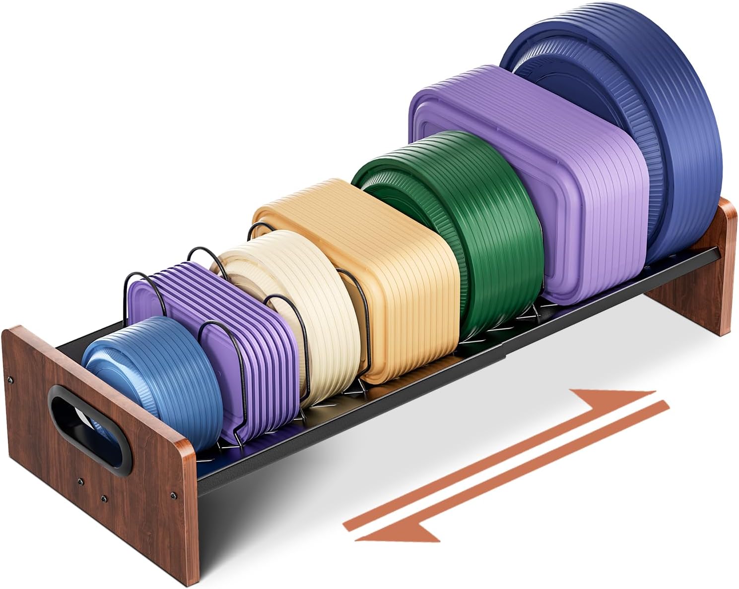 - 【Multi-Purpose Kitchen Organizer】Not just for food container lids—use it for pot lids, cutting boards, baking sheets, kitchen towels, or even cookbooks! Simplify storage across your kitchen.