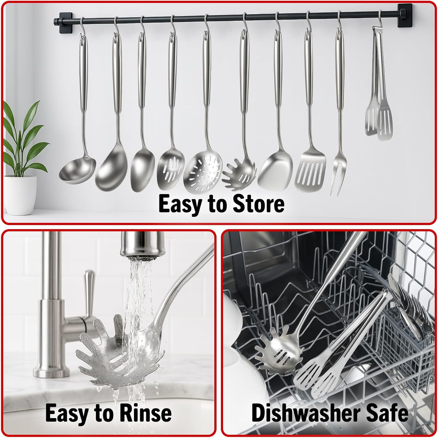 - Integral Forming. The Turner and the handle is made by integral forming of 304 stainless steel, more durable. Smooth surface for preventing from dirty. Easy to clean, dishwasher safe.