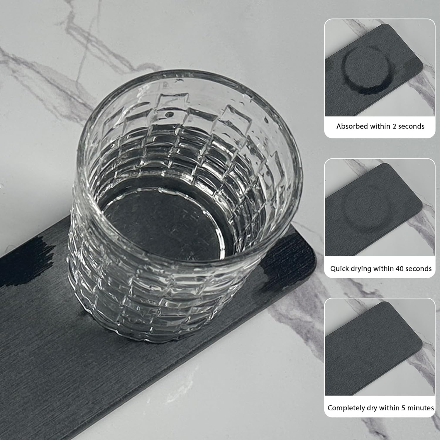 - 5mm thick non-slip pads boost the slip-resistance of coasters while keeping them out of the bathroom vanity. This design improves the contact surface between the diatomaceous earth coaster and the air, accelerate moisture evaporation, and prolongs the service life of the product.