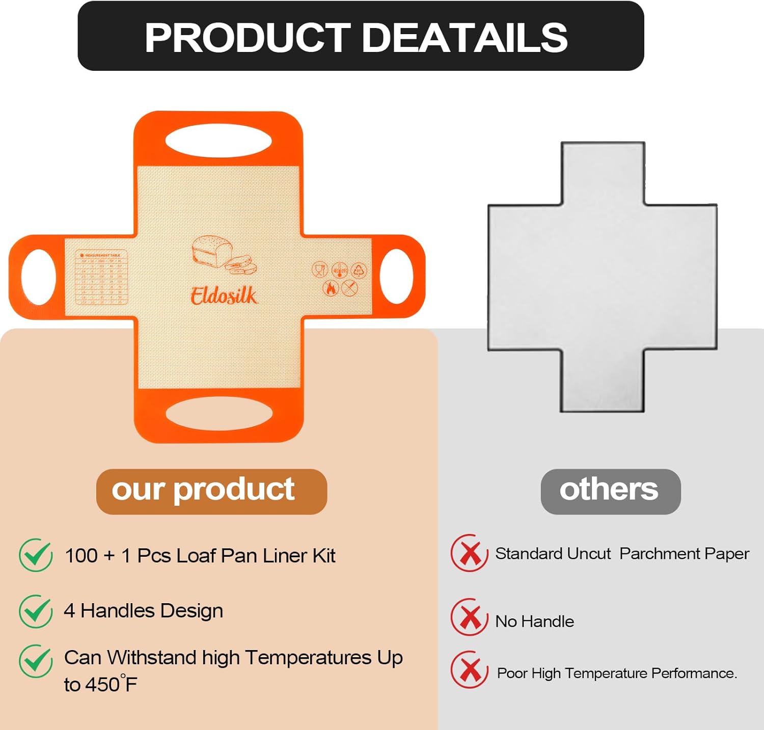 - 【Reusable + Disposable — Versatile & Space-Saving】 Reduce waste with the long-lasting silicone mat, ideal for bread, cakes, and meatloaf. The 100 precut parchment sheets lie flat without curling and work great in 9’’x5’’ and 10’’x5’’loaf pans. A smart solution for any kitchen!