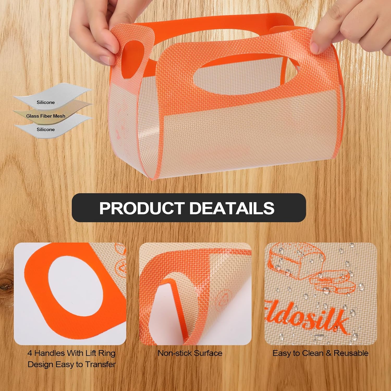 - 【4-Handle Silicone Sling for Secure Lifting】The reusable mat includes four strong handles for steady control and safe transfer of hot, heavy loaves. Prevents tilting, spilling, or deformation — perfect for sourdough and delicate recipes.