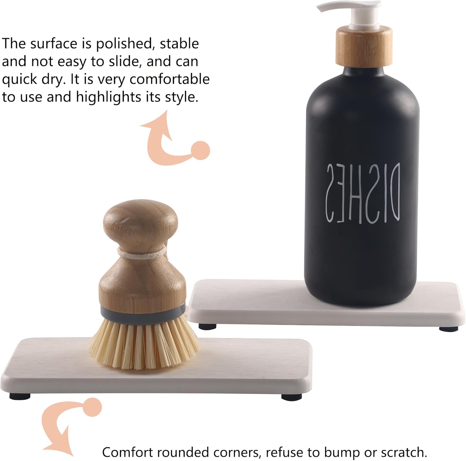 2 Pcs Water Absorbing Stone Trays, Kitchen/Bathroom Sink Soap Dish, Diatomite Tray Used for Hand Soap & Cosmetic Bottles in The Modern Home, 3.5" W x 7.1" L, White