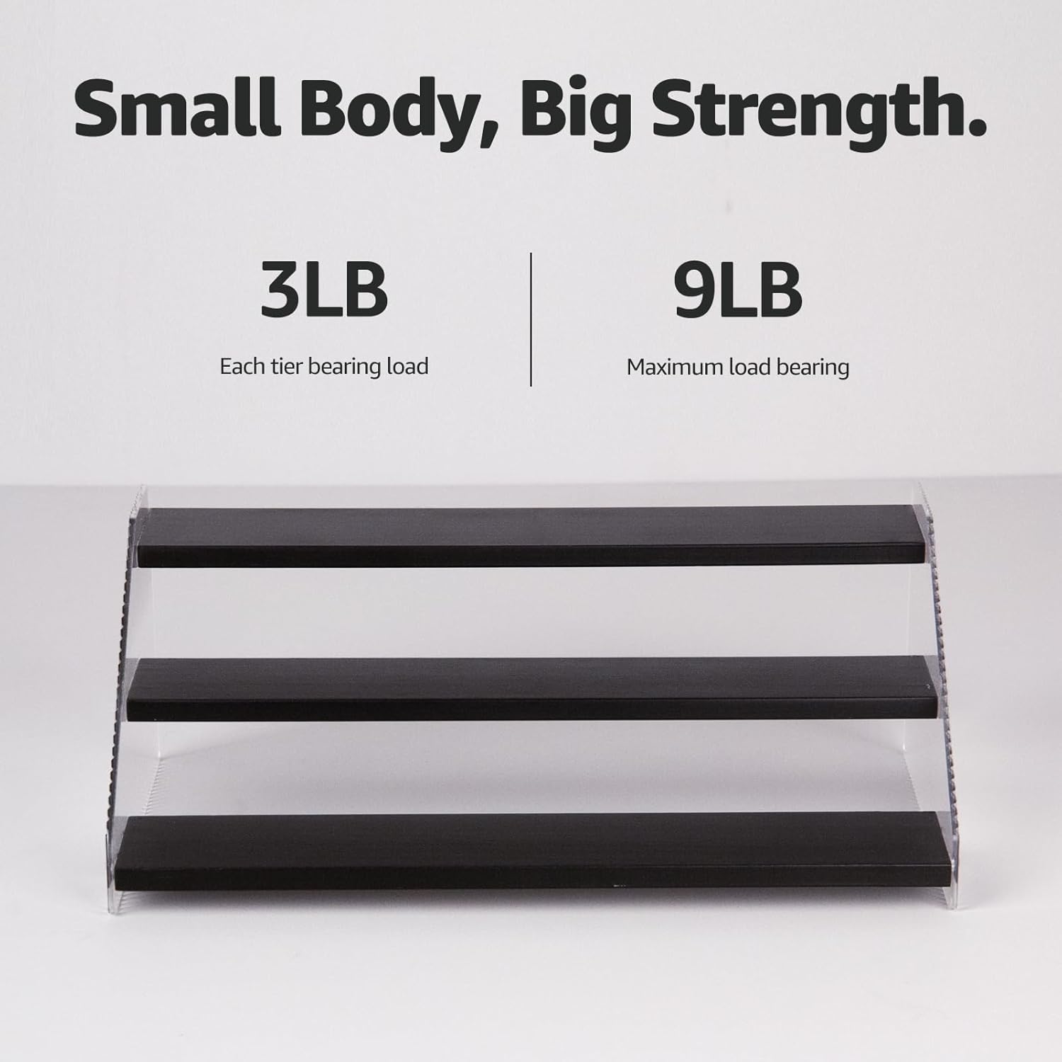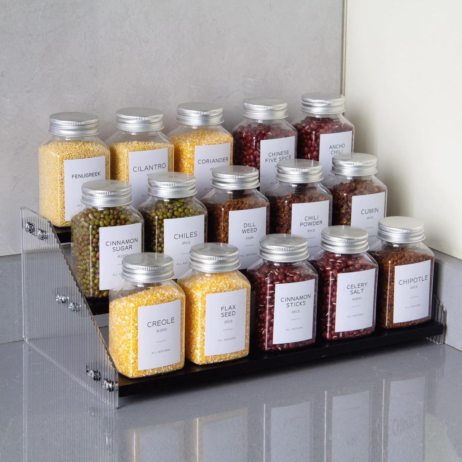 - Elegant & Sturdy: Risers display stands constructed from high-quality pine wood and corrugated acrylic, making it both aesthetically pleasing and fashionable, as well as durable and resistant to deformation, the spice shelf is a beautiful and robust addition to any space