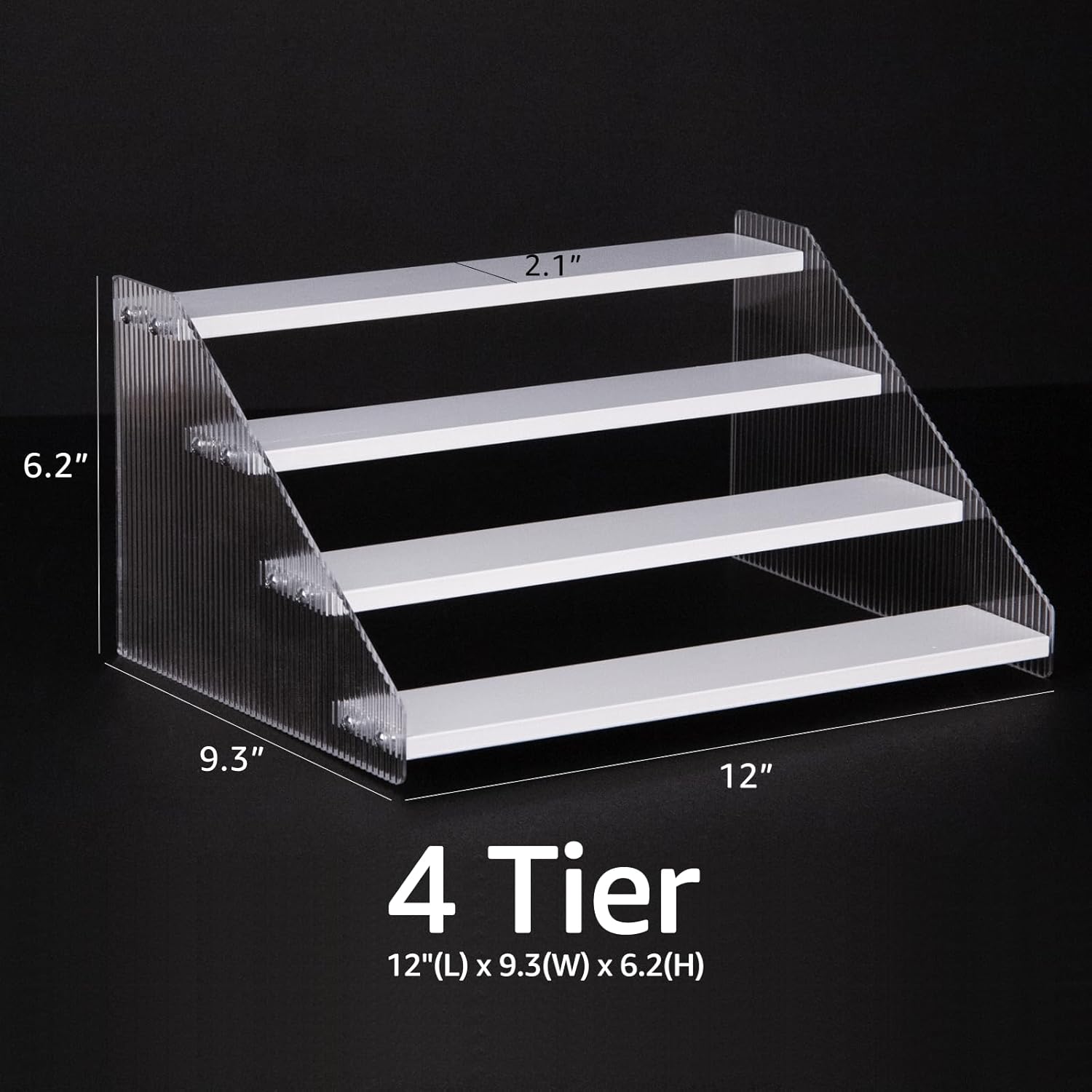 nianfeng Tiered Spice Rack, 4-Tier Spice Pantry Kitchen Cabinet Organizer, 12-Inch, Natural Wood Acrylic Stair Riser Stand, Countertop Seasoning Shelf (White)