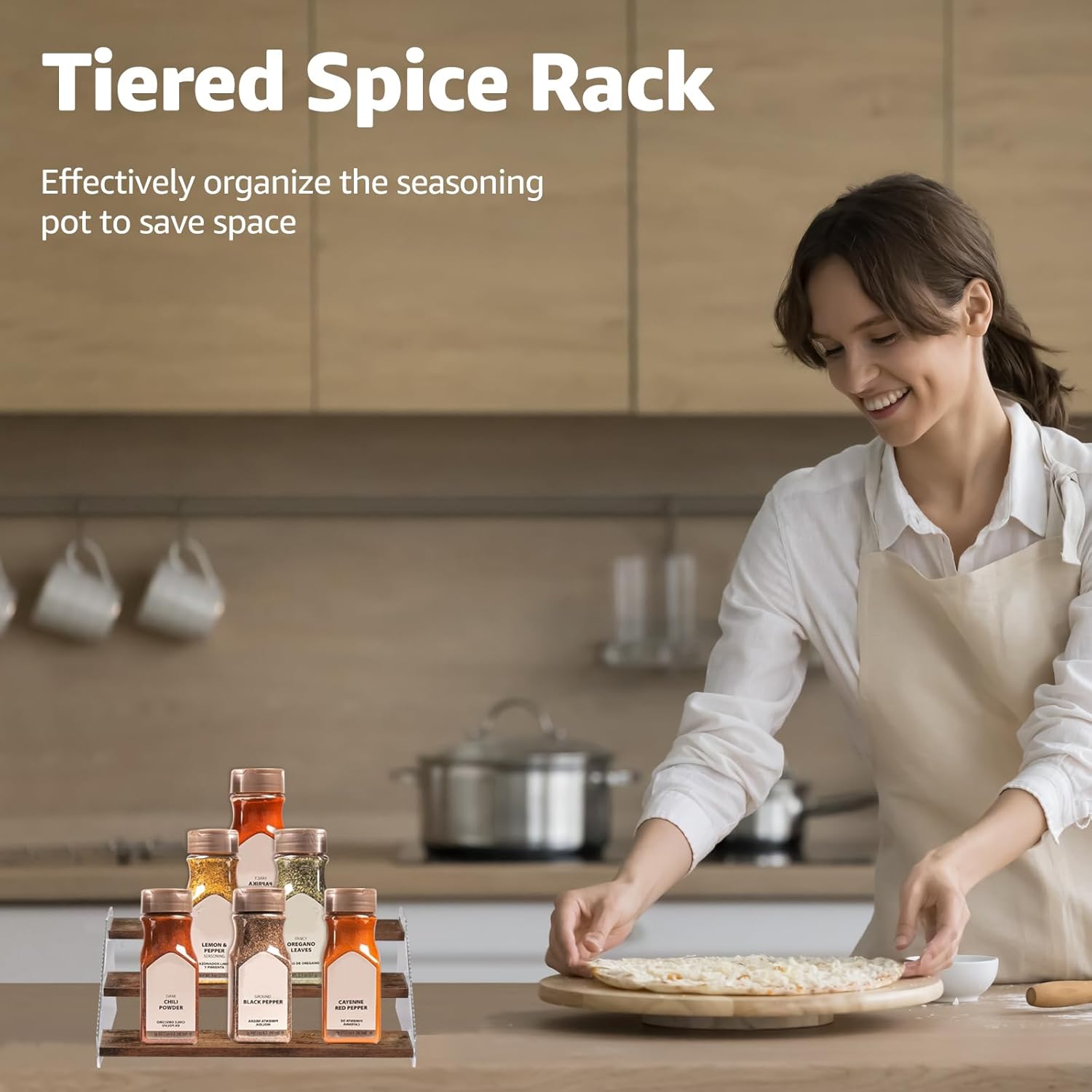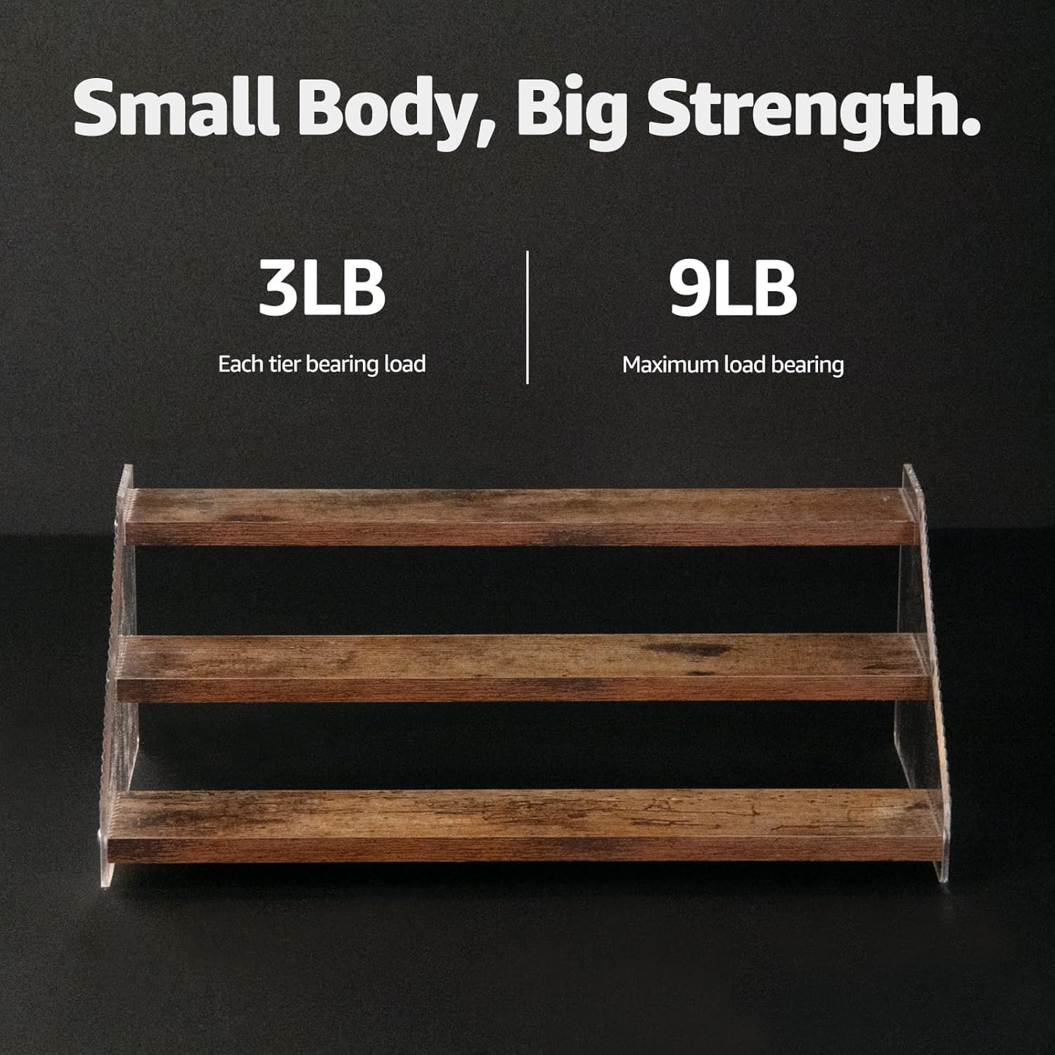 - Elegant & Sturdy: Risers display stands constructed from high-quality pine wood and corrugated acrylic, making it both aesthetically pleasing and fashionable, as well as durable and resistant to deformation, the spice shelf is a beautiful and robust addition to any space