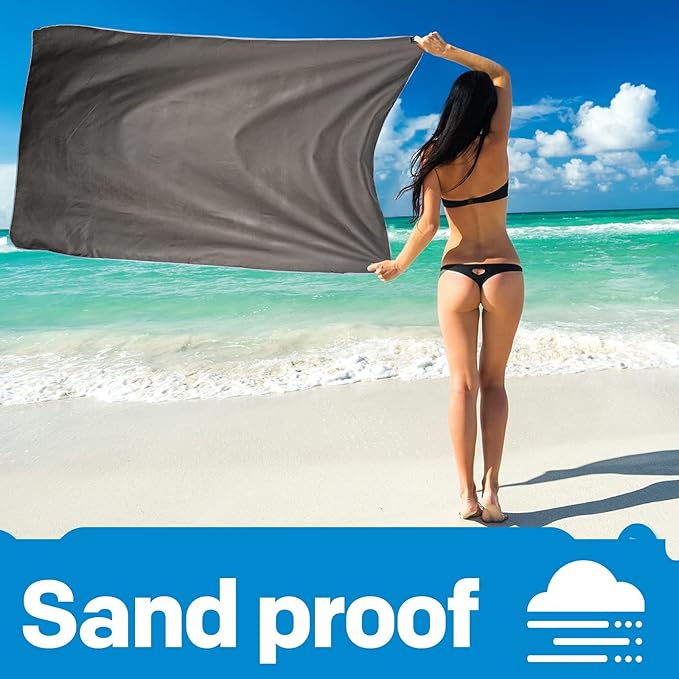- SOFT COMFORTABLE & SAND PROOF: This travel towel are made from luxurious soft microfiber which is smooth and no any abnormal smell. Gives your skin a dry feeling and can be used as a sun shade to protect your skin. The oversized beach towel aslo sand-proof. When you play on the beach, microfiber towel doesn't stick to the sand. Whether you use as a gym towels, camping towel, hand towel, face towel, sweat towel or even as survival gear and equipment, these quick dry towels will come in handy!