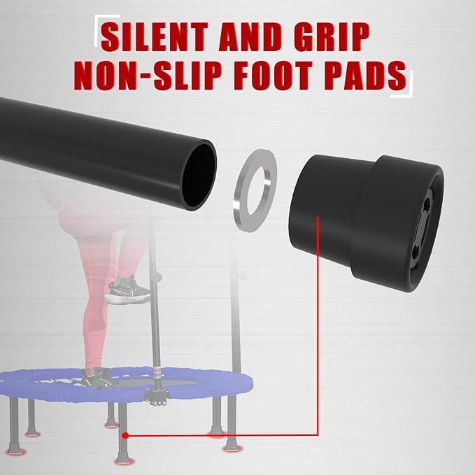 - 🕺【Non-slip Mute Design】: 2 kinds of foot pads are optional. The mute rubber foot pads provide better and more stable grip for safety and non-slip.Our trampoline would be a great gift.You can give it to your friends, family and lover as a Thanksgiving, Easter and Halloween Christmas gift.They'll love it!