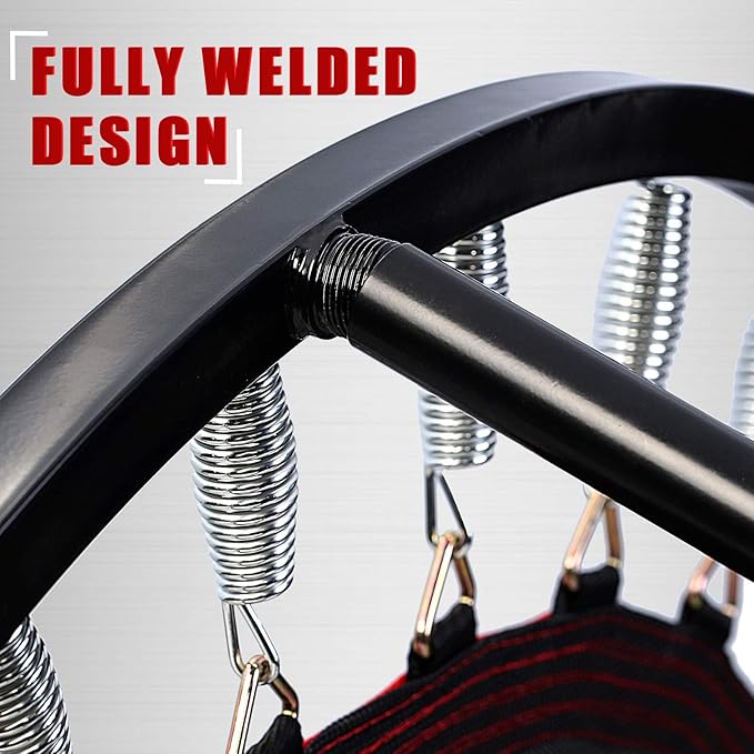 - 🕺【Surper Bearing Capacity】:Our fitness rebounder trampoline is made of thick steel spring, more durable and elastic. Use the closed design to avoid sharp part displayed for safety and safe from foot injury,maximum load of 330 pounds, high strength steel and durable PP Oxford fabric material composition, long service life.