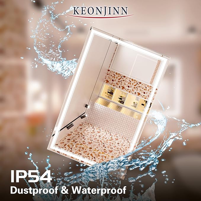- 【Tempered Glass & Packaging】 Strong and safe tempered glass are resistant to breakage, ensuring your daily use for safety. Newly improved packing greatly reduces damage during transportation. Keonjinn led mirrors have passed all tests including dropping test, impact test, heavy pressure test etc.