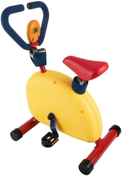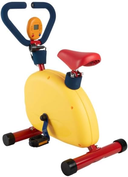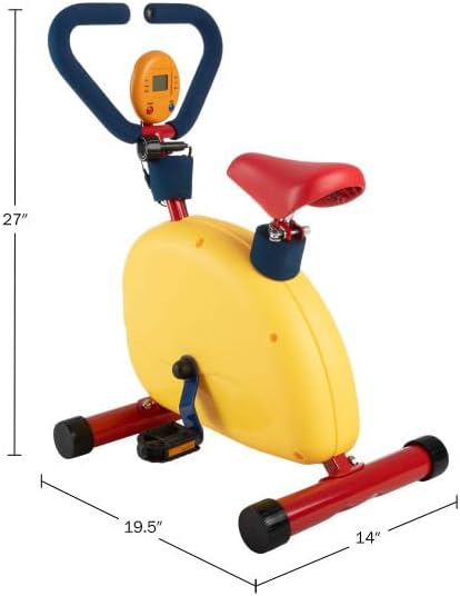 - KIDS STATIONARY BIKE - This colorful piece of kids exercise equipment helps your tyke get physical activity in any weather, with safe manual operation and an LED monitor that shows exercise time and shuts off automatically after 10 minutes of no activity.