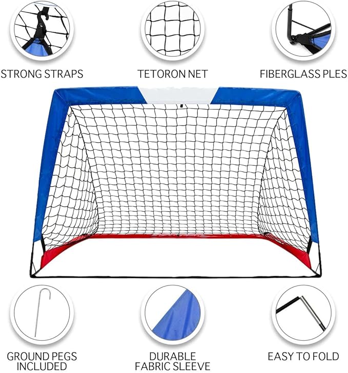 - Durable construction: The kids soccer net is supported by twice stronger fiberglass rods and stakes for better stability. With durable Oxford fabric, the soccer goal net can help catch every strong shot and withstand years of use