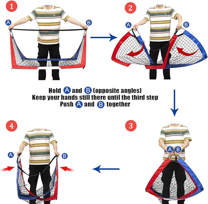 - Quick assembly: Assembly is easy by following instruction. Once it’s done, you can twist the kids soccer goals into the carrying case and unfold it within seconds. Only 1 second for quick play