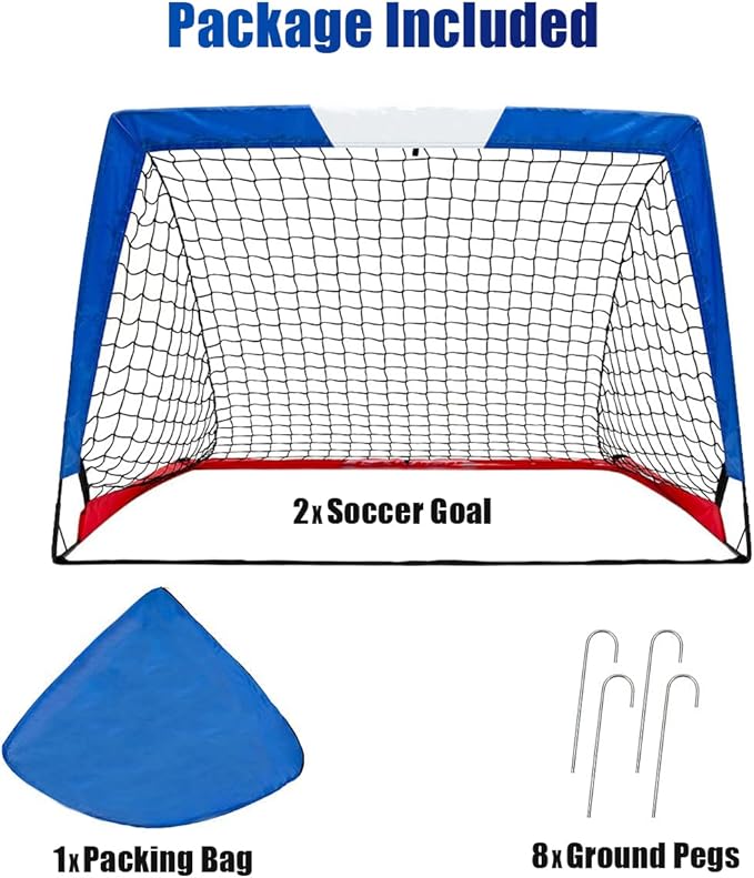 - Multiple sizes & colors: We have 3.3’ x 2.2’, 4’ x 3’, and 6.3’ x 3.6’ in size and multiple colors. If you have any question about pop up soccer goals set of 2, please feel free to contact us