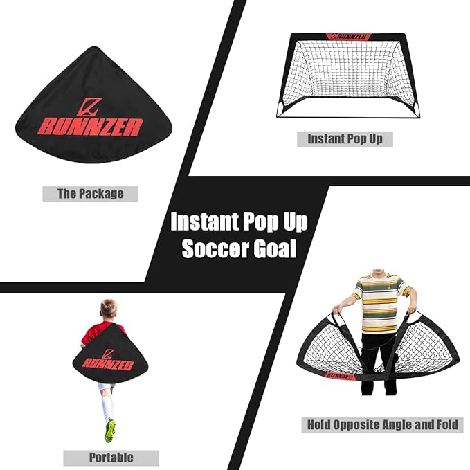 - Multiple size & colors: We have 3.3’ x 2.2’, 4’ x 3’, and 6.3’ x 3.6’ in size to meet your need. And if you have any question about pop up goal soccer, please feel free to contact us