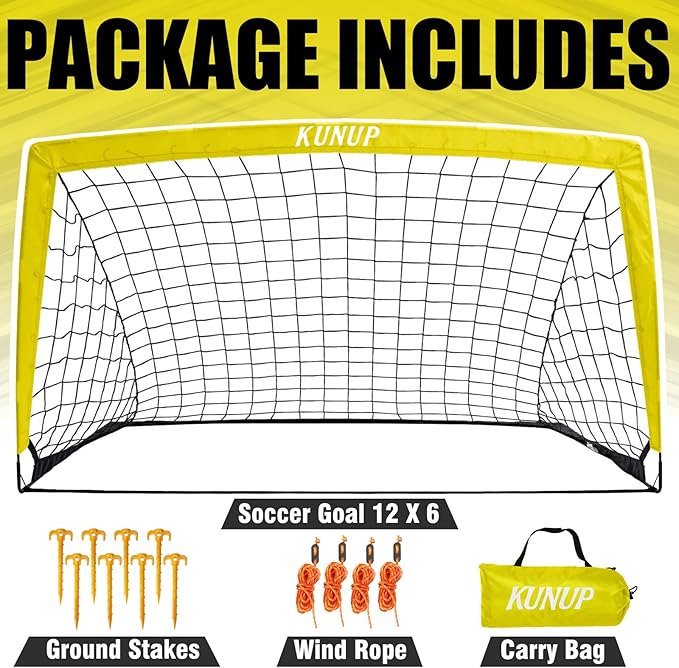 - THICK FIBERGLASS POLES: The soccer goal with 12 mm high-elastic fiberglass poles,its elasticity effect is 1.3 times that of ordinary fiberglass poles, and it can perform well even in the face of powerful shots.