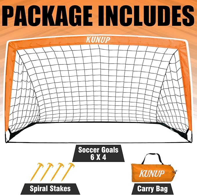 - 4 GROUND STAKES FOR REINFORCEMENT: The attached ground stakes can make the kids soccer net more stronger and stable, so it can withstand many strong shocks and not easy to fall down.