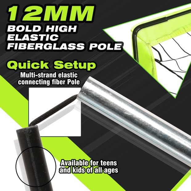 - THICK FIBERGLASS POLES: The soccer goal with 12 mm high-elastic fiberglass poles,its elasticity effect is 1.3 times that of ordinary fiberglass poles, and it can perform well even in the face of powerful shots.